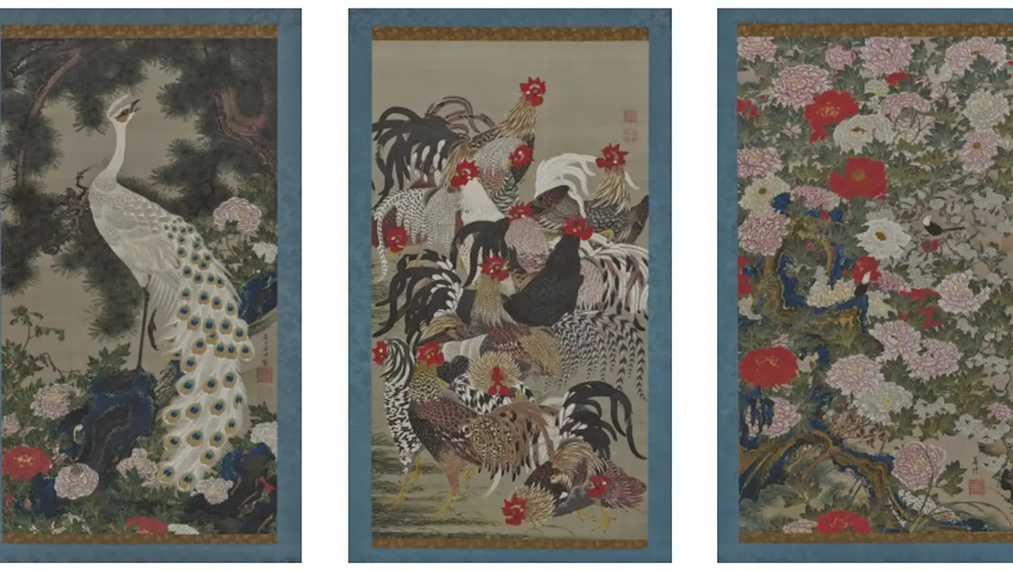 今回複製品が制作された《動植綵絵》は、江戸時代中期の画家・伊藤若冲が約10年間をかけて完成させた30幅に及ぶ花鳥画の大作。植物、鳥、昆虫、魚貝など、様々な生き物の生命感を瑞々しく描いた若冲の代表作として知られている。