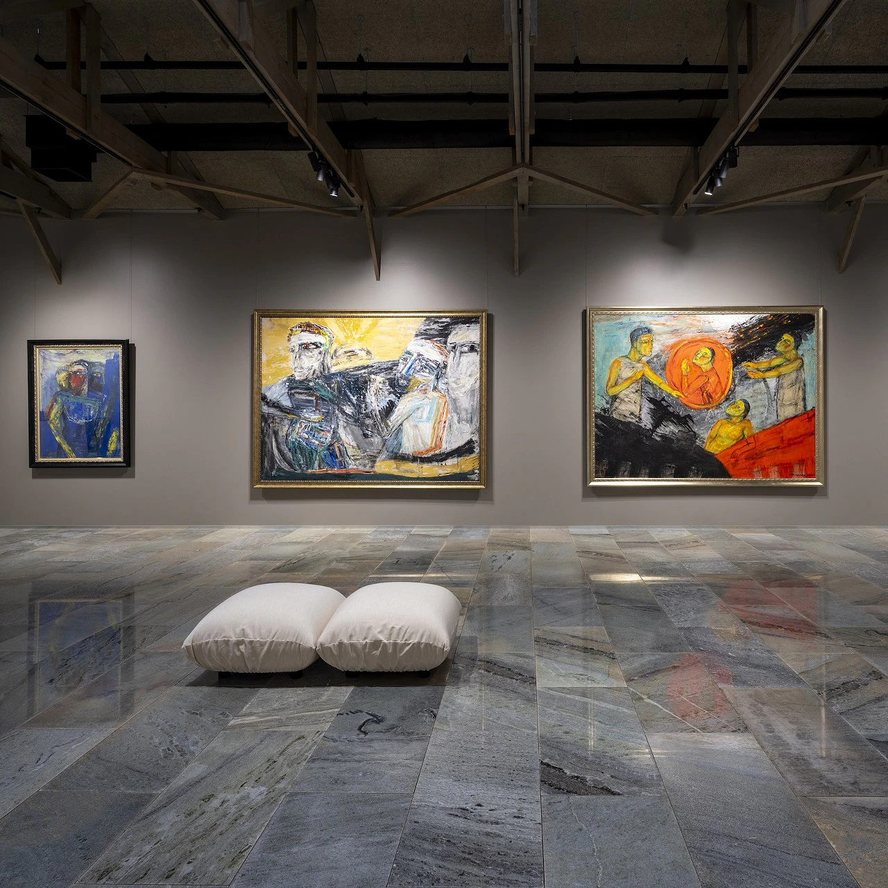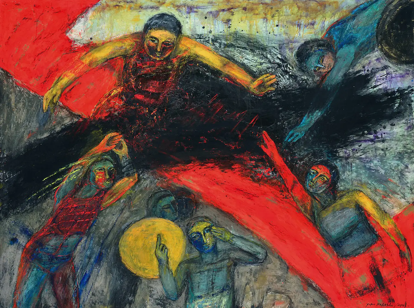 馬越は1934年東京生まれ、東京藝術大学大学院修了。「人間の本質を描く」ことを生涯のテーマとして、現在も精力的に大作を描き続ける画家だ。73年には、女性初の文化庁芸術家在外研修員として渡欧米。安井賞展佳作賞、安田火災東郷青児美術館大賞など受賞を重ね、パリ、NY、北京などで個展を開催。北京・ロンドン両五輪での招待出品など国際的にも活躍している。2022年には旭日中綬章を受章。現在は、日本芸術院会員、多摩美術大学院客員教授、独立美術協会会員、女流画家協会委員、日本美術家連盟監事などを務める。