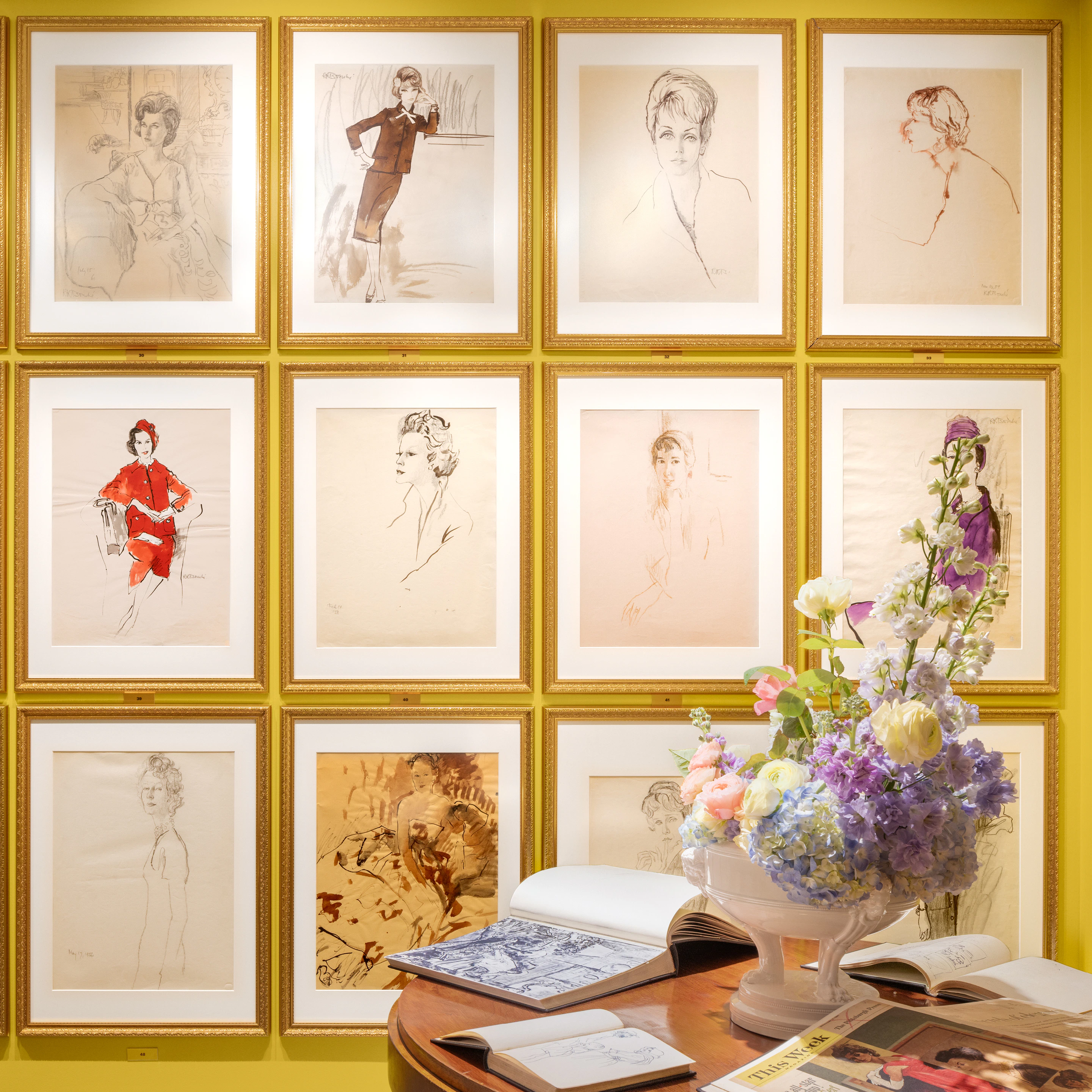 本展は、20世紀のファッション誌で活躍した代表的なイラストレーターのひとり、ルネ・ブーシェのスタジオアーカイブから選ばれた約70点のポートレート・ドローイングを紹介するものだ。展示作品の多くは、長年にわたり妻のデニーズ・ブーシェの自宅で大切に保管されてきたもので、これまでほとんど公開されてこなかった。キュレーションは批評家のディーン・リース=モーガンが担当し、まとまったかたちで紹介されるのは、1957年にニューヨークのアレクサンダー・イオラス・ギャラリーで開催された展覧会以来となっている。