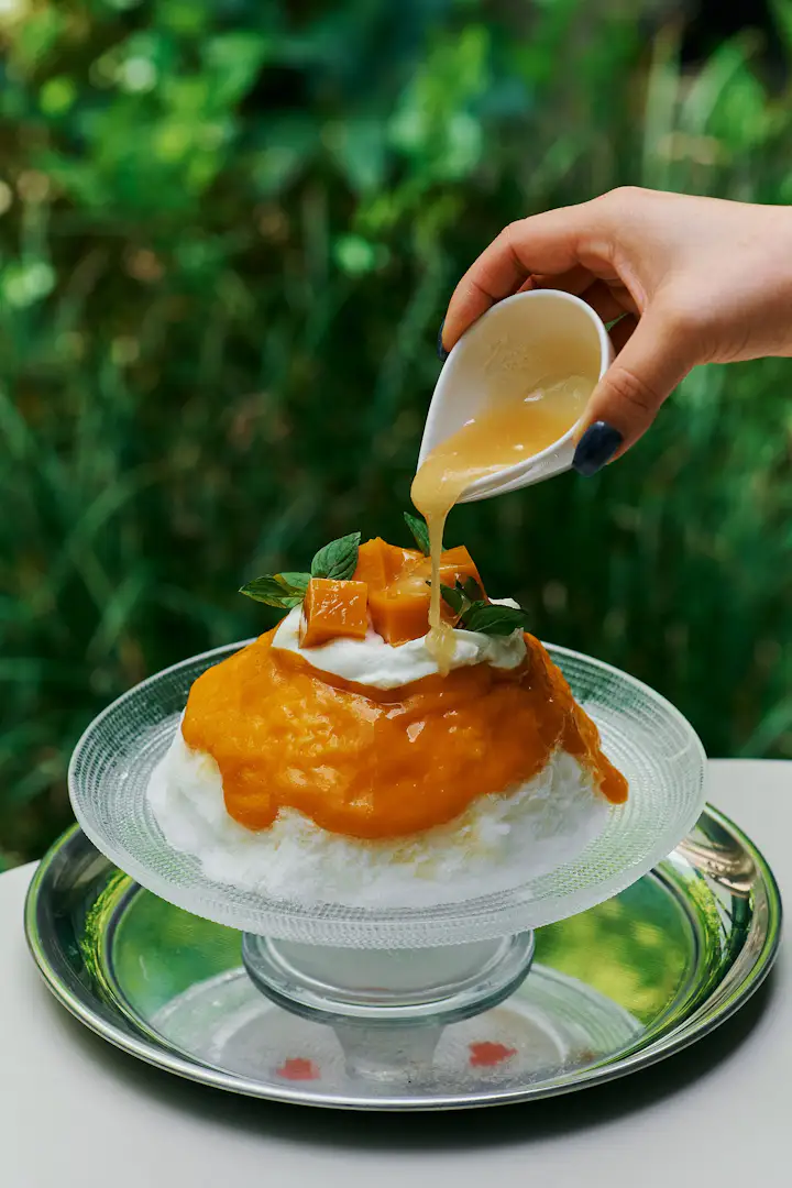 また、併設のレストランスペースでは、人類の食の歴史を辿る特別なコース料理体験《400万年を食べる》(2026)を実施。狩猟や農耕にまつわる料理を楽しむことができる(完全予約制)。加えて、蜂蜜と塩を用いた「花と海と平和を待つための かき氷」も、限定300食で提供される。