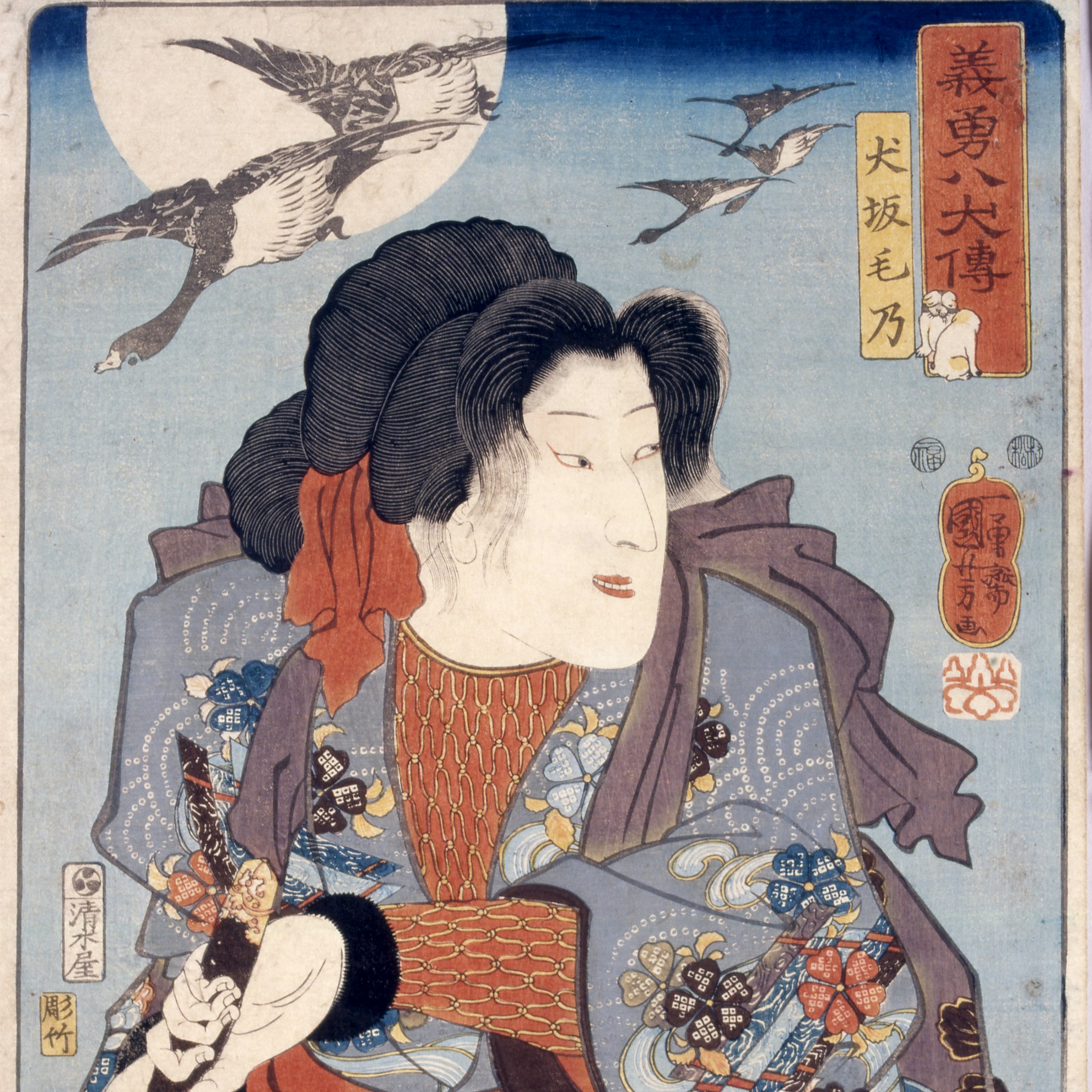 今回の展覧会では馬琴の物語を軸にして、歌川国芳や歌川国貞といった浮世絵師の作品を中心に紹介。また、江戸時代の『南総里見八犬伝』ブームについても浮世絵という切り口から取り上げる。