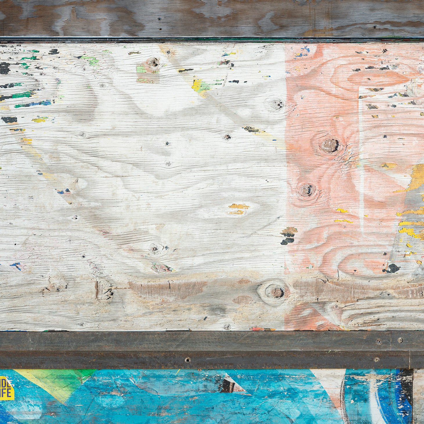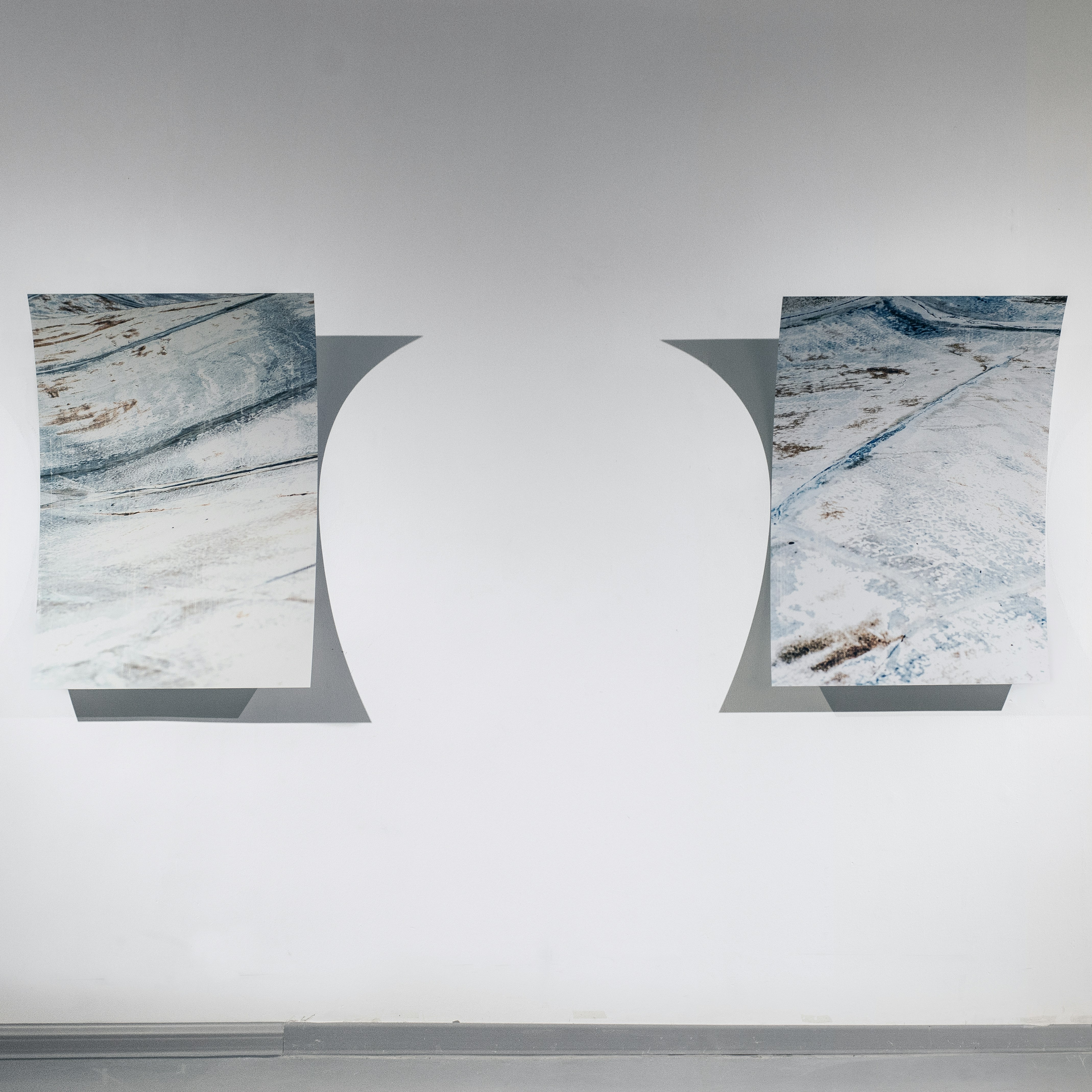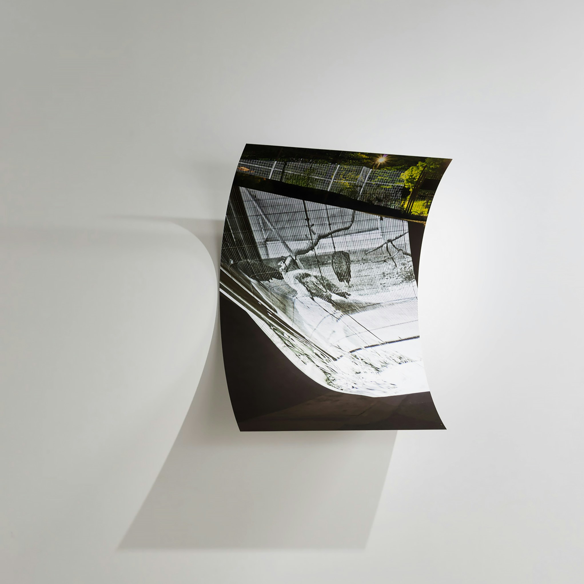 本展では、曲げられたアルミ板の片方の面に写真を焼き付け、もう一方の面を鏡面に仕上げた写真彫刻を展開する。写真画像は、スケートボーダーが練習に使う箱状の足場と地面を撮影しつなぎ合わせてつくり出されたもの。カーブを描く競技場を疾駆するスケートボーダーの視界のように、水平垂直のフレームから解き放たれた作品は、写真と身体性の新たな可能性を見せてくれるだろう。