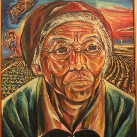 その四國と親しく交流し、師と慕ったのが「清掃員画家」として活動するガタロだ。河童の異称である「ガタロ(河太郎)」を名乗る彼は、かつて「原爆スラム」と呼ばれた地に建つ「基町アパート」の清掃員として働きながら、日々の仕事の道具や出会った人、原爆ドームや広島の風景などを描き続けている。