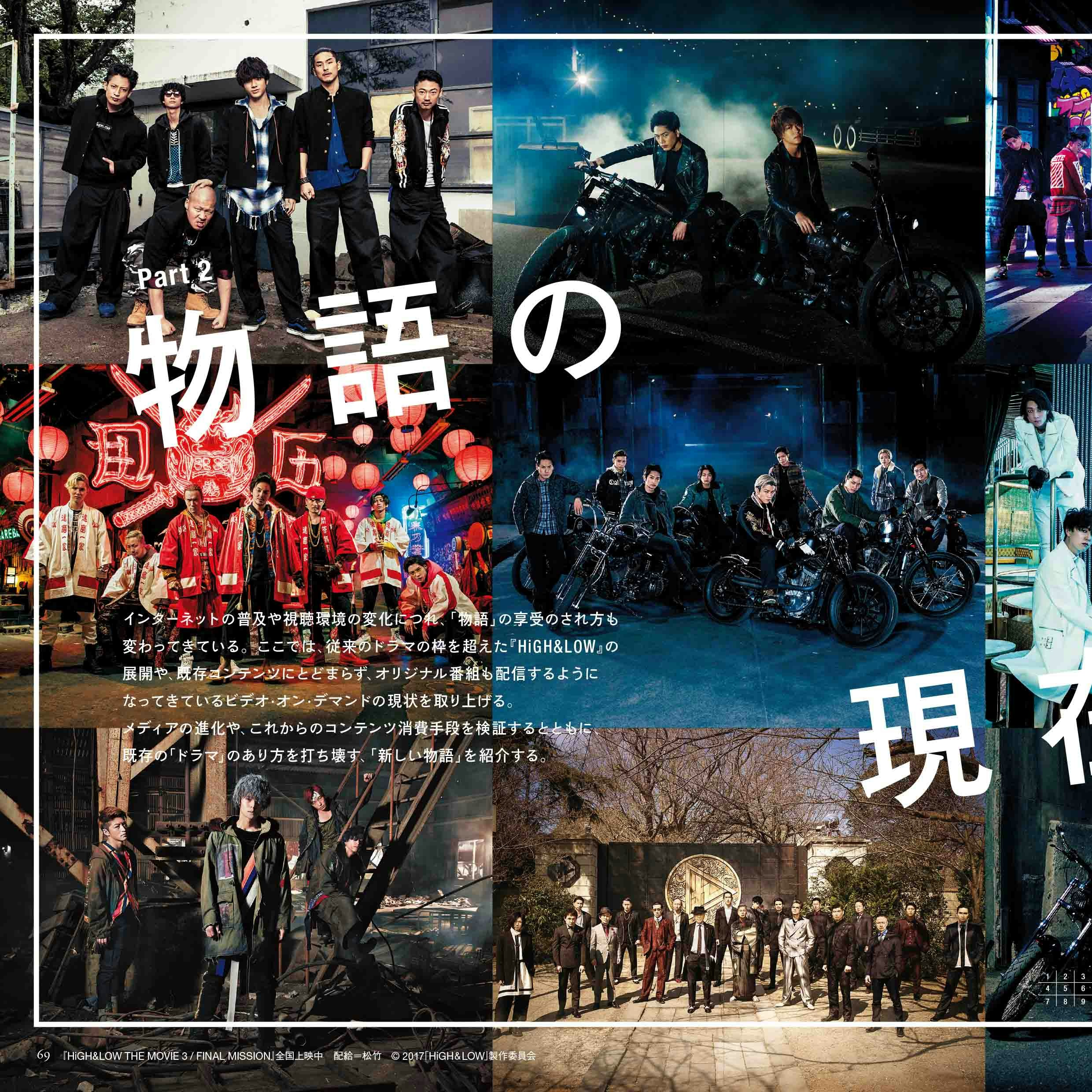 Part2「物語の現在地」では、EXILEのHIROが企画プロデュースを務める『HiGH&LOW』を8ページにわたって紹介。植野浩之プロデューサーや久保茂昭監督のインタビューも交えながらヒットの秘密を検証する。同作の脚本家でTeam HI-AXの平沼紀久と渡辺啓の対談も実現した。