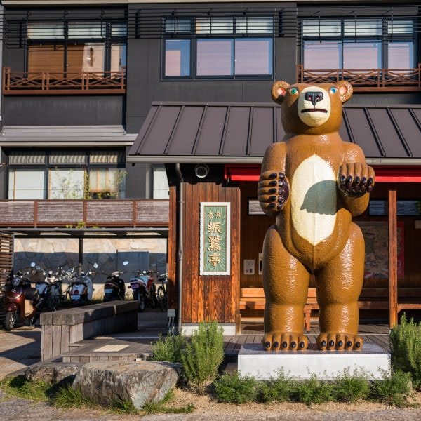 プレオープン期間より展示中の、高さ3メートル超のクマの彫刻《Animal 2017-01-B2(クマ)》。本作の作者であり、等身大の動物をかたどる木彫作品などを手がけてきた三沢厚彦は、《アニマルハウス in 道後》を新たに発表。画家の小林正人、杉戸洋、彫刻家の舟越桂と滞在制作を行い、彫刻や絵画からなるインスタレーション空間を出現させる。