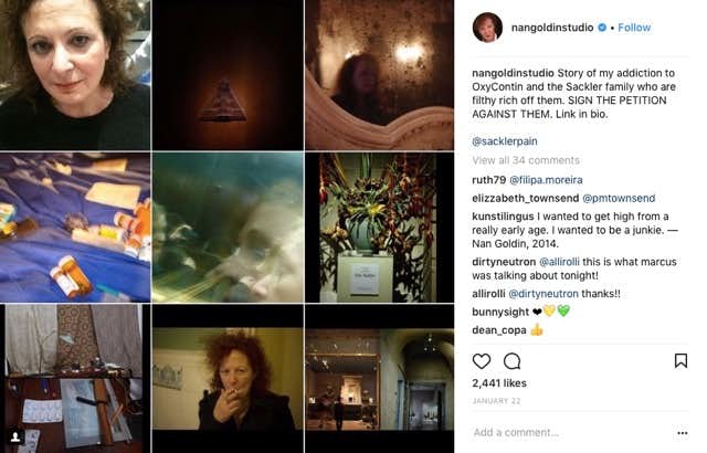 ナン・ゴールディンのインスタグラムより オピオイドの中毒症状に苦しんでいるなか撮影された写真が公開されている