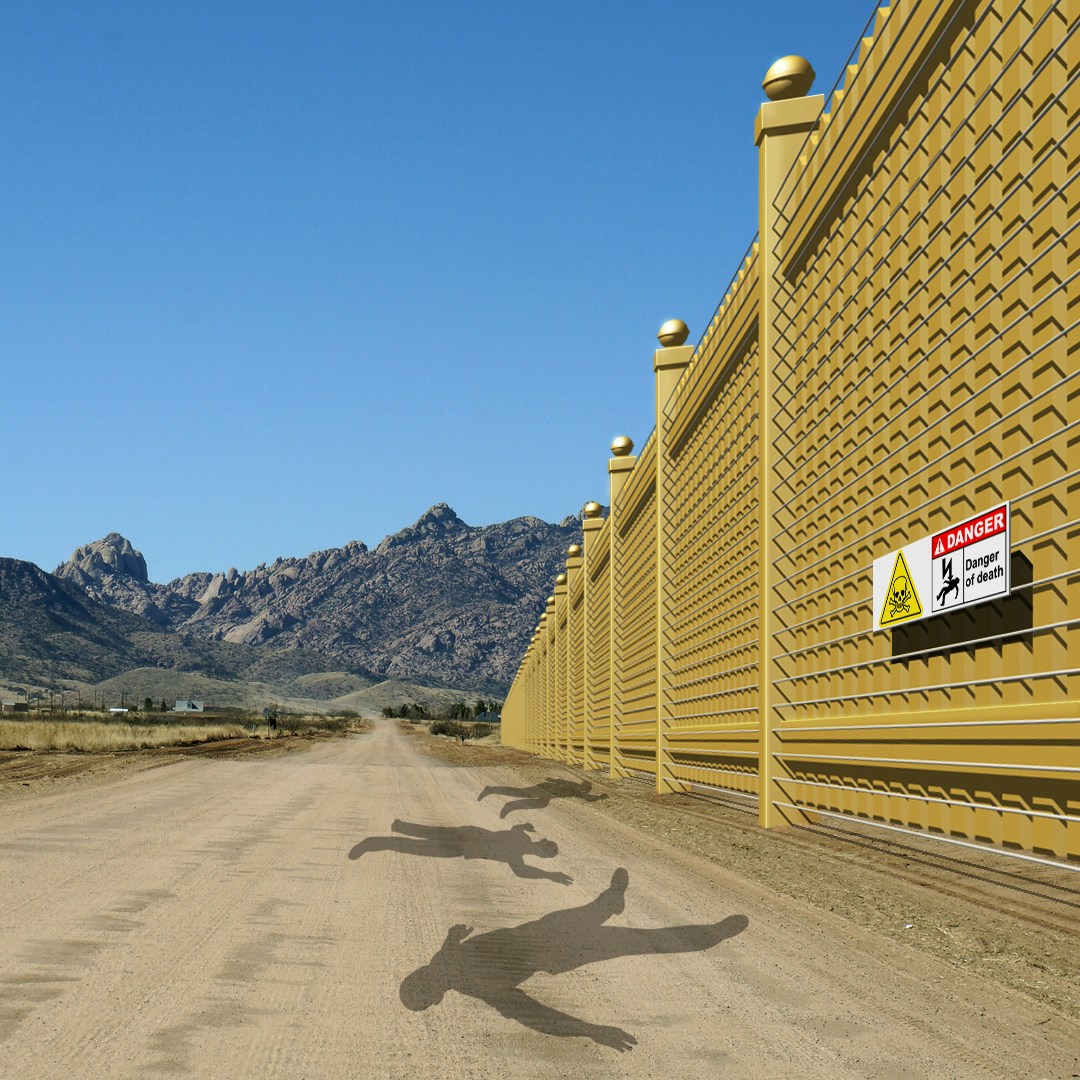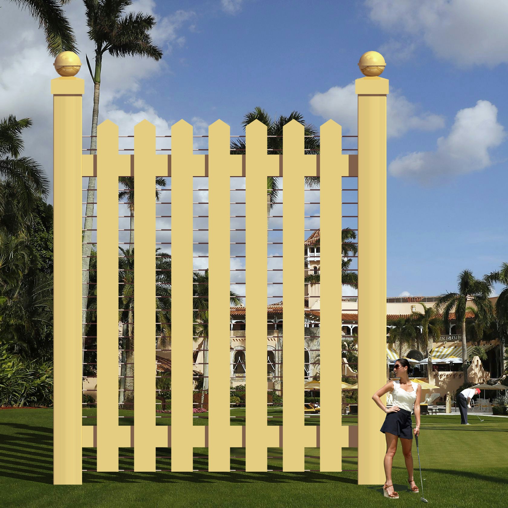 これは、トランプ大統領が提案したアメリカとメキシコの国境沿いに壁を建設する計画を皮肉るもので、フロリダ州にあるトランプ大統領の別荘「マー・ア・ラゴ」の周辺やメキシコとの国境に柵を立ち上げるというプロジェクト。高さ約9メートルのピケットフェンスをイメージした本プロジェクトは金色で仕上げられており、トランプ大統領が主張する「古き良きアメリカ」のイメージを反映している。