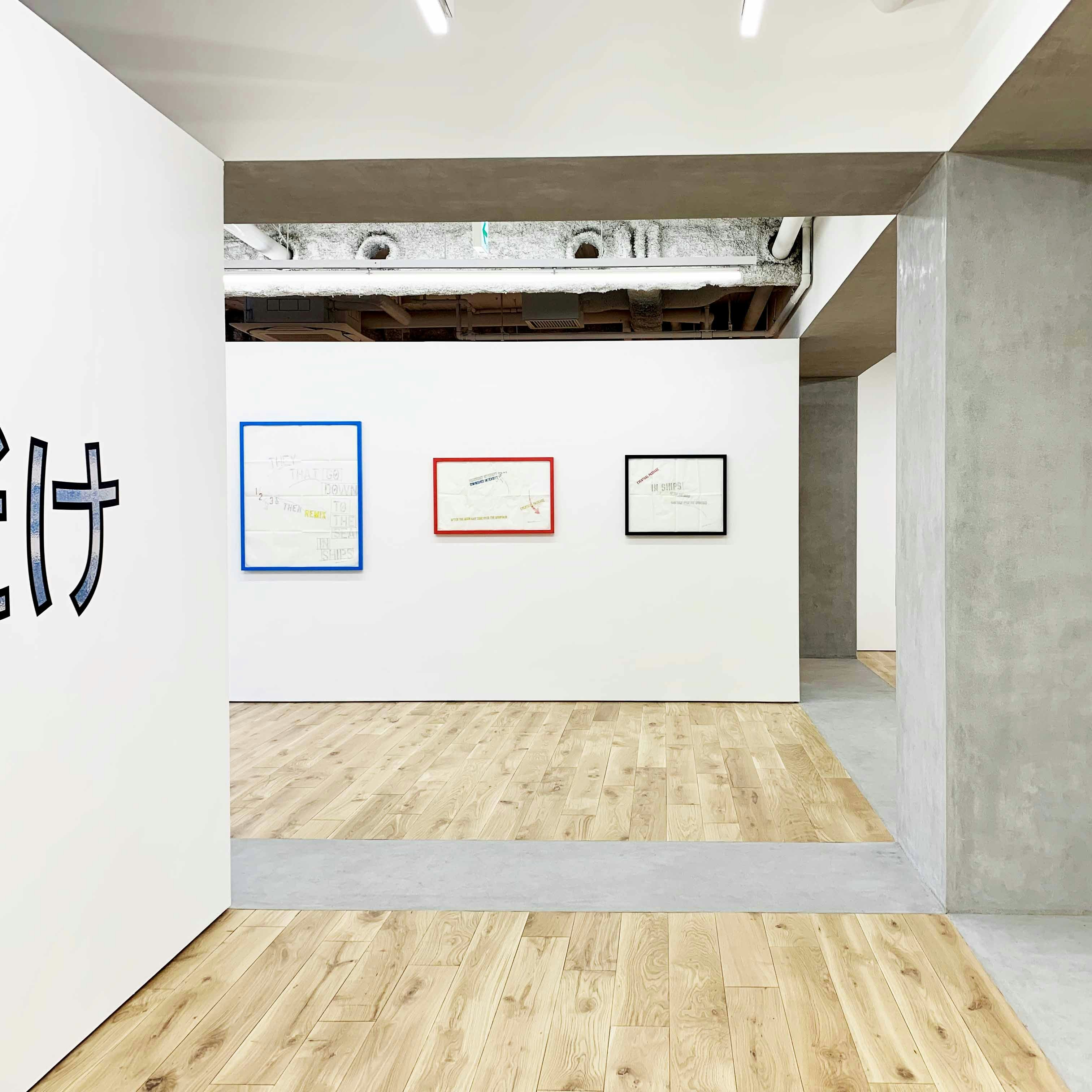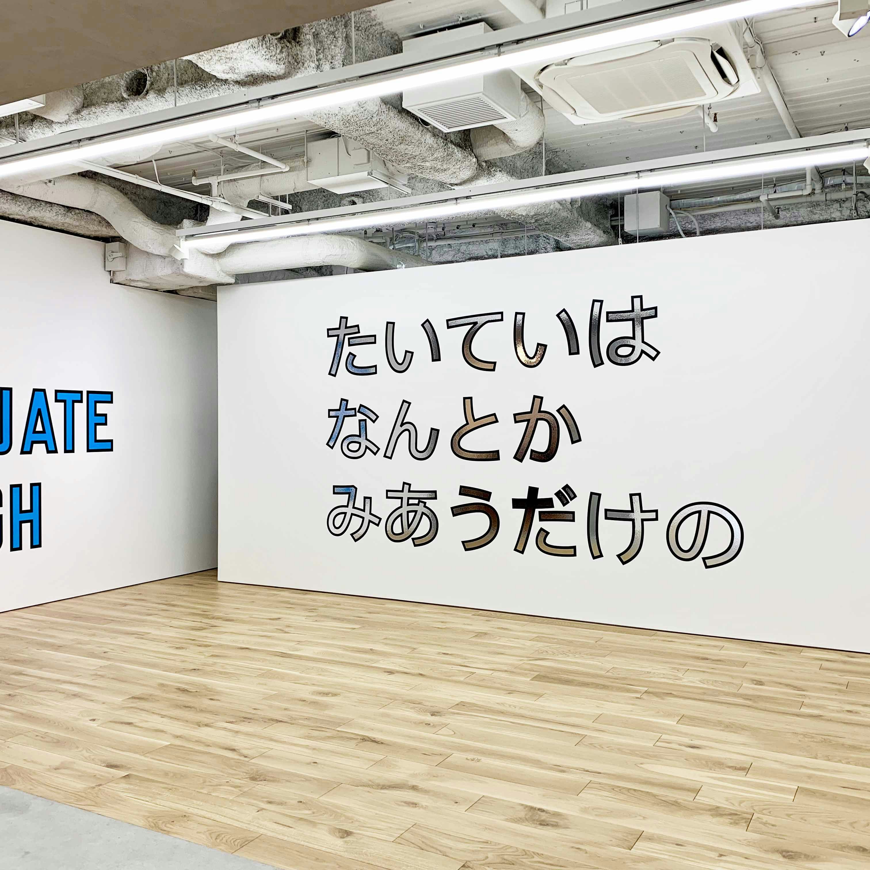こけら落としはコンセプチュアル・アートの旗手として1960年代から現代美術の第一線で活動してきたローレンス・ウィナーの個展「OFTEN ADEQUATE ENOUGH」。会場にはウィナーの代表的なシリーズであるタイポグラフィを用いた新作が並び、真新しい空間を彩る。