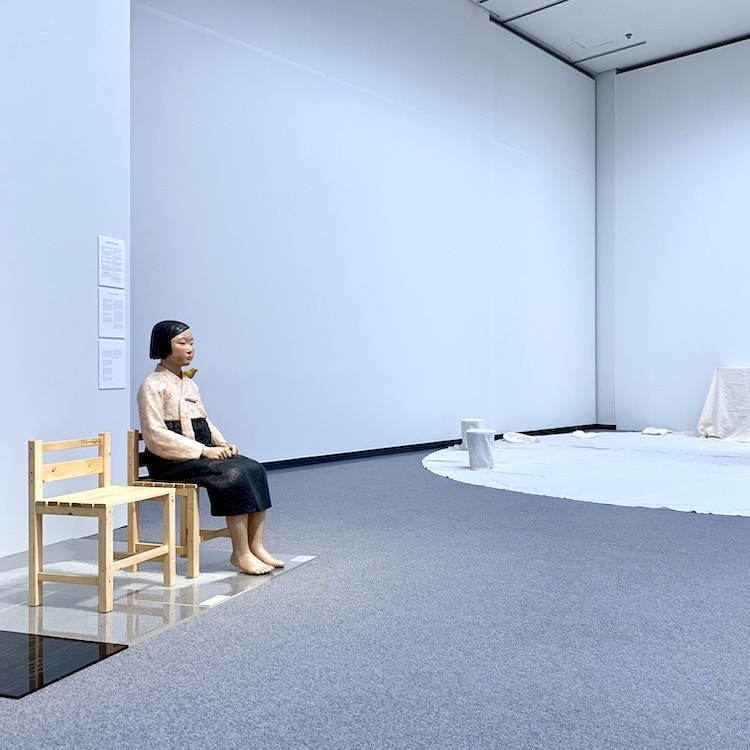 物議を醸しているのは、「あいちトリエンナーレ2019」の出展作家の1組である「表現の不自由展・その後」が展示した、キム・ソギョンとキム・ウンソンの《平和の少女像》(2011)。