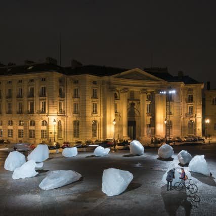 自然現象を再現する大型インスタレーション作品で国際的に高い評価を獲得し、近年は環境問題にも積極的に取り組むオラファー・エリアソン。例えば国連の気候変動会議にあわせて、グリーンランドの氷河から巨大な氷塊を取り出し、ロンドンをはじめとするヨーロッパの都市へ輸送・設置したインスタレーション《アイス・ウォッチ》は、温暖化問題を可視化し、触れる・見るといった知覚への働きかけをとおして、この深刻な課題へと人々の思考を誘うものだった。