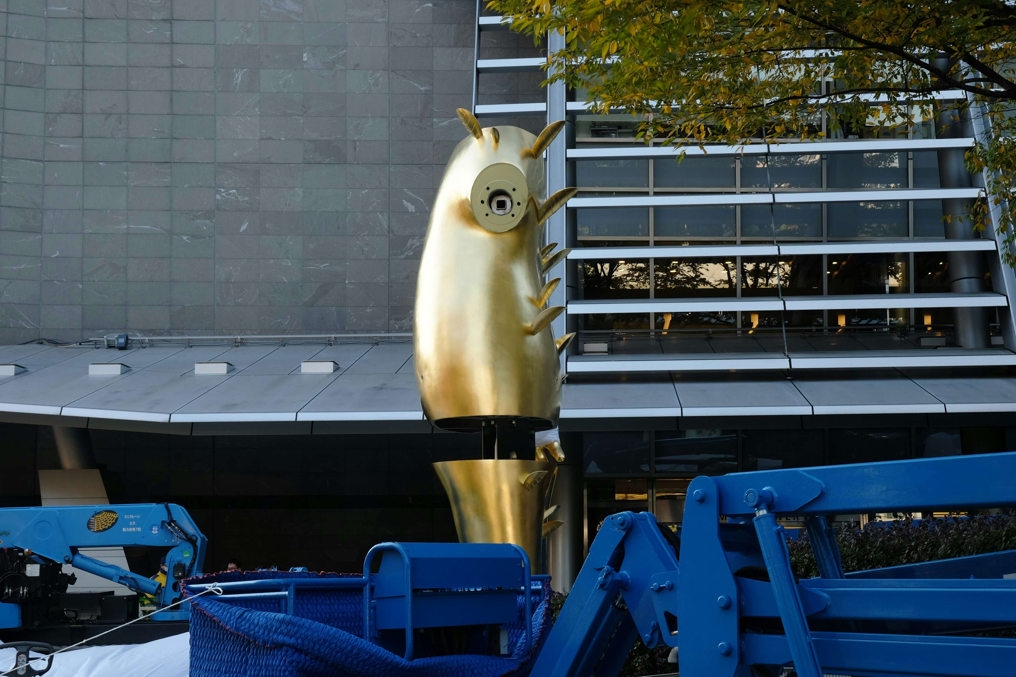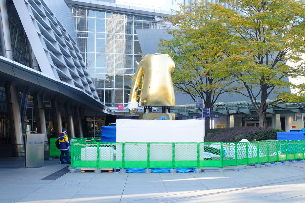 設置作業中の村上隆の立体作品