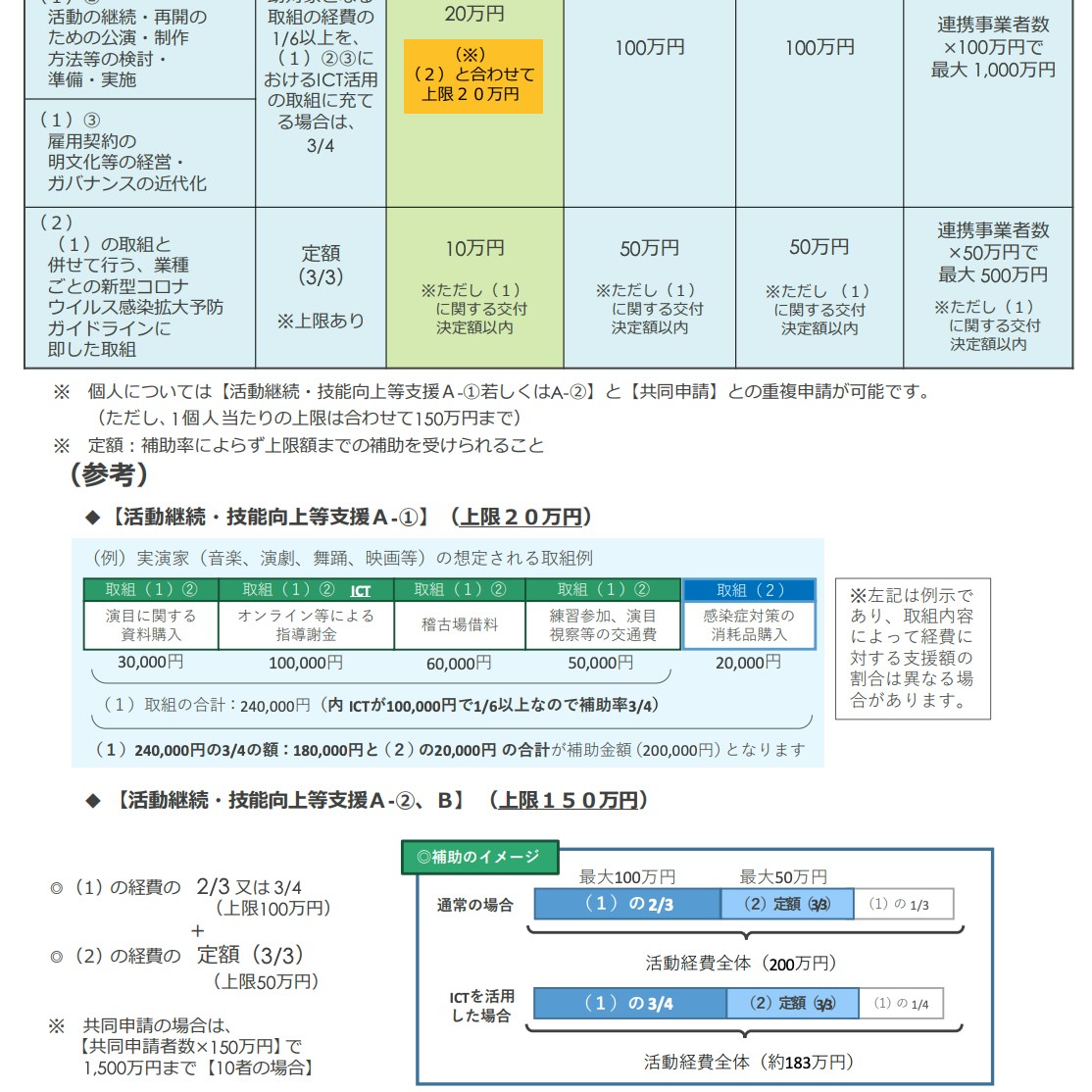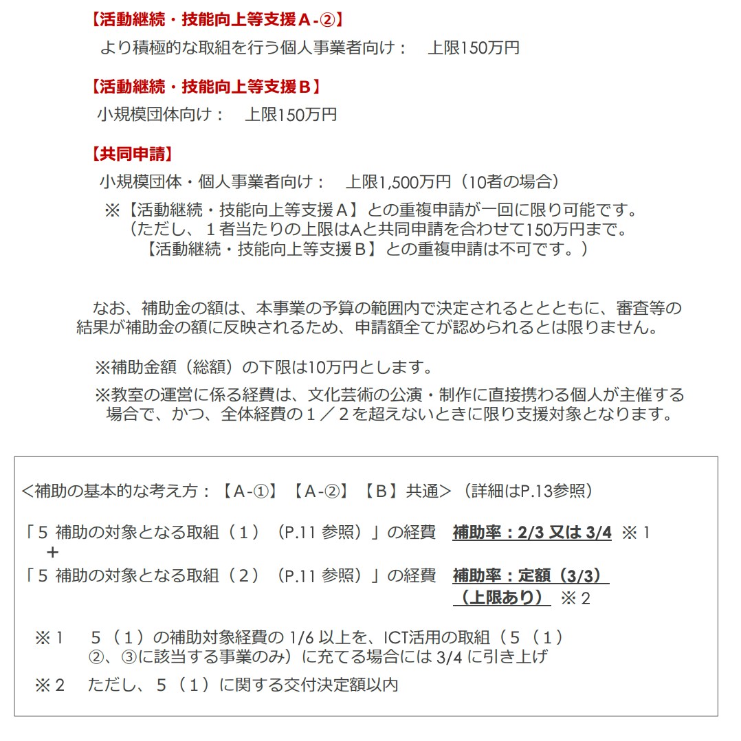 この補助金は、新型コロナの影響で発表の機会などが減少したアーティストなどを支援するため、その活動資金として20万円から最大150万円を支給するもの。