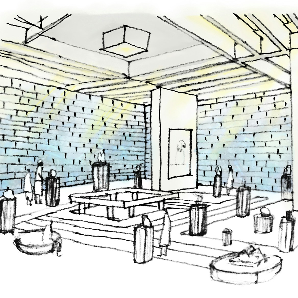 内部は建築家/水野製陶園ラボの水野太史による光を柔らかく反射するタイルによって、大切なものをしまう宝箱のような空間をつくる計画となっている。ここでは「愛される建築」を考えるうえでヒントとなるインタビュー映像やリサーチをまとめた模型を「宝物」として展示し、その意義や理念を伝える。