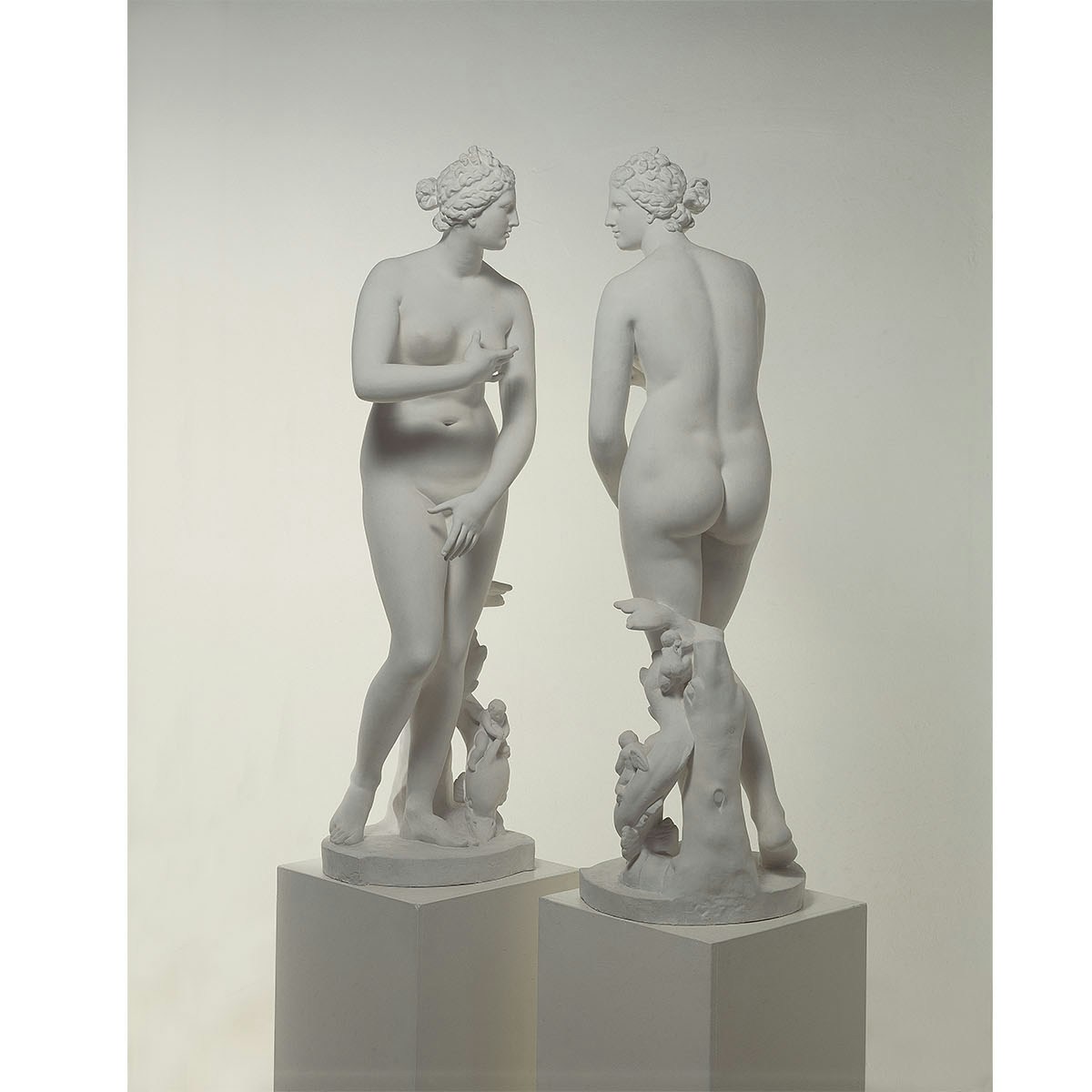 ほかにも、美術史の名品から着想し、見る者と見られる物、時間な空間、美術をめぐる枠組みに揺さぶりをかける作品が目立ち、代表例として同じギリシア彫刻の石膏像2つを対面配置し、両者を隔てる空間までを表現した《ミメーシス(模倣)》(1975~76)が挙げられる。