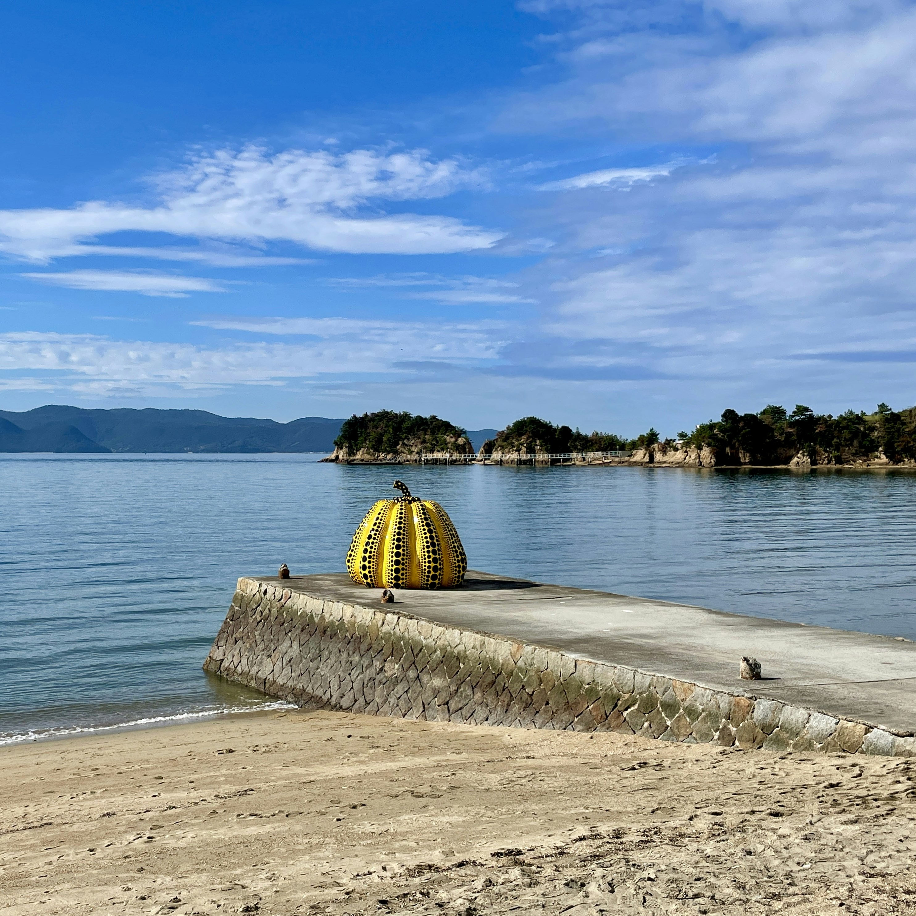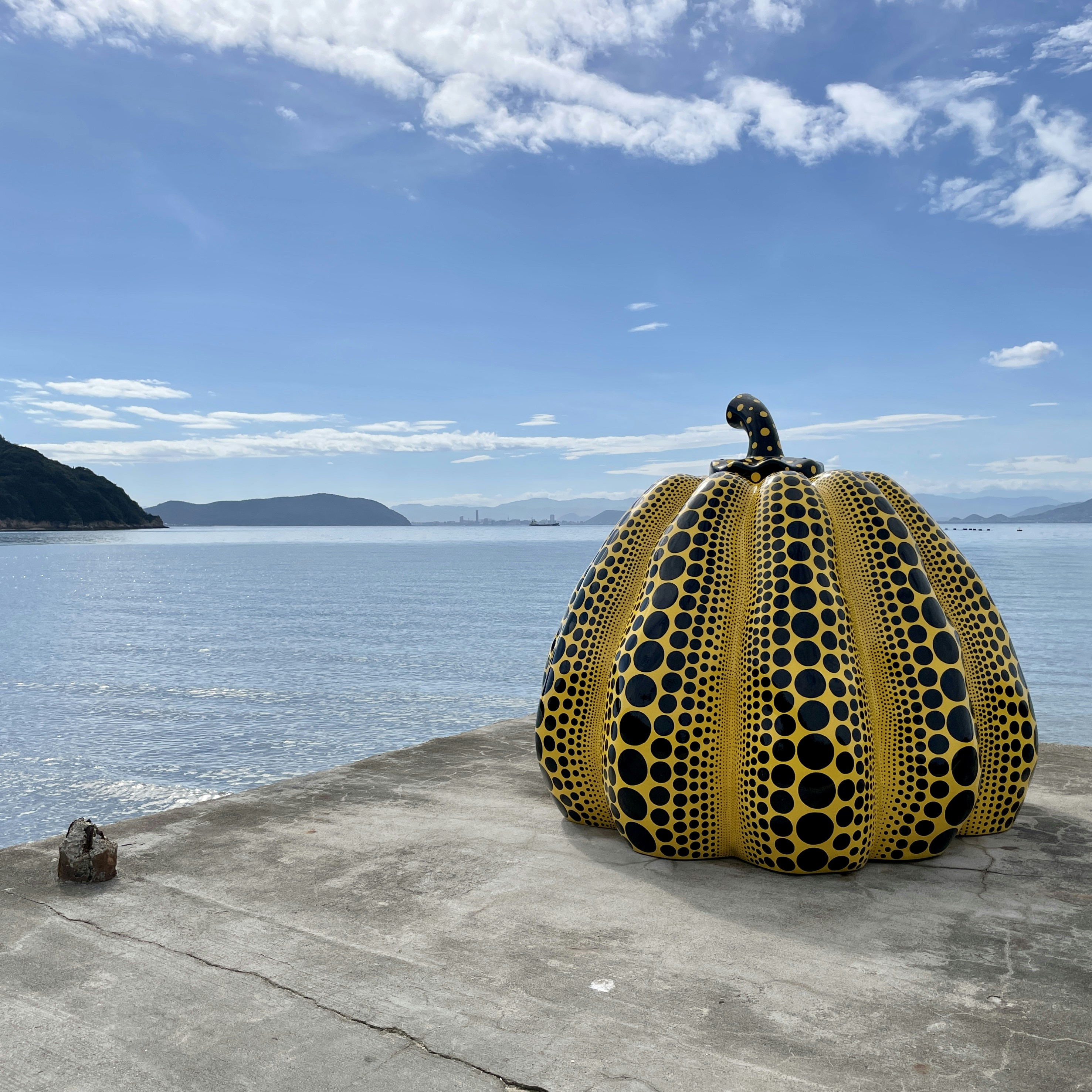 直島のアイコン的な存在であり、昨年8月に台風で海に流され破損した草間彌生の《南瓜》(1994)が、約1年の復元制作を経て10月4日にふたたび公開された。