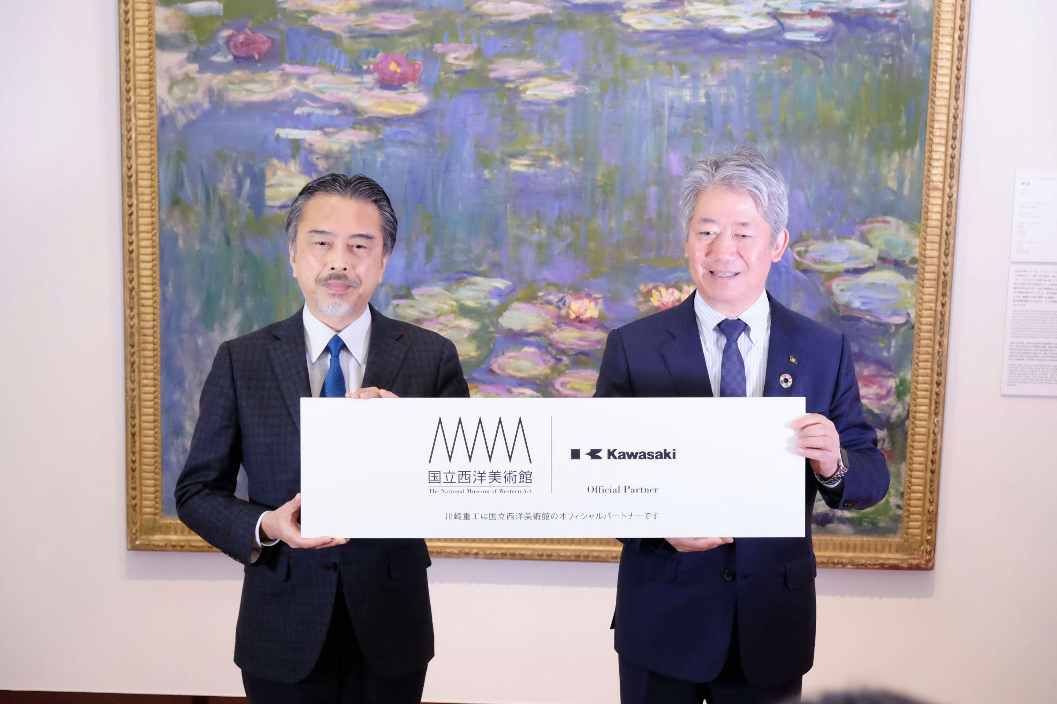 記者発表にて、左から田中正之(国立西洋美術館館長)、橋本康彦(川崎重工業CEO)