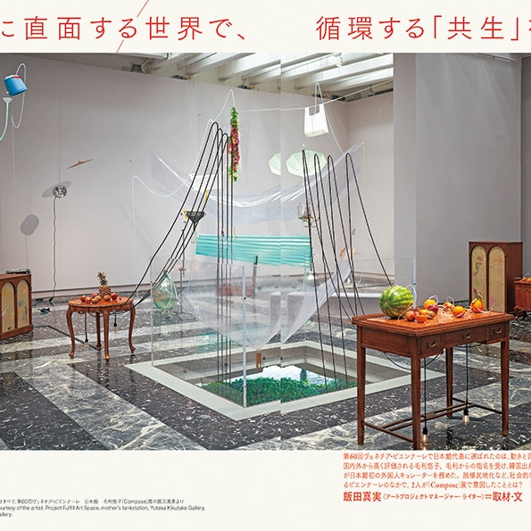 第2特集では、第60回ヴェネチア・ビエンナーレ日本館の毛利悠子「Compose」展をリポート。動きと音を伴う音響彫刻的な作品で国内外から高く評価される毛利、そして毛利からの指名によりイ・スッキョンが日本館初の外国人キュレーターを務めた。同地で開催された「Compose」展の意図に飯田真美がせまる。