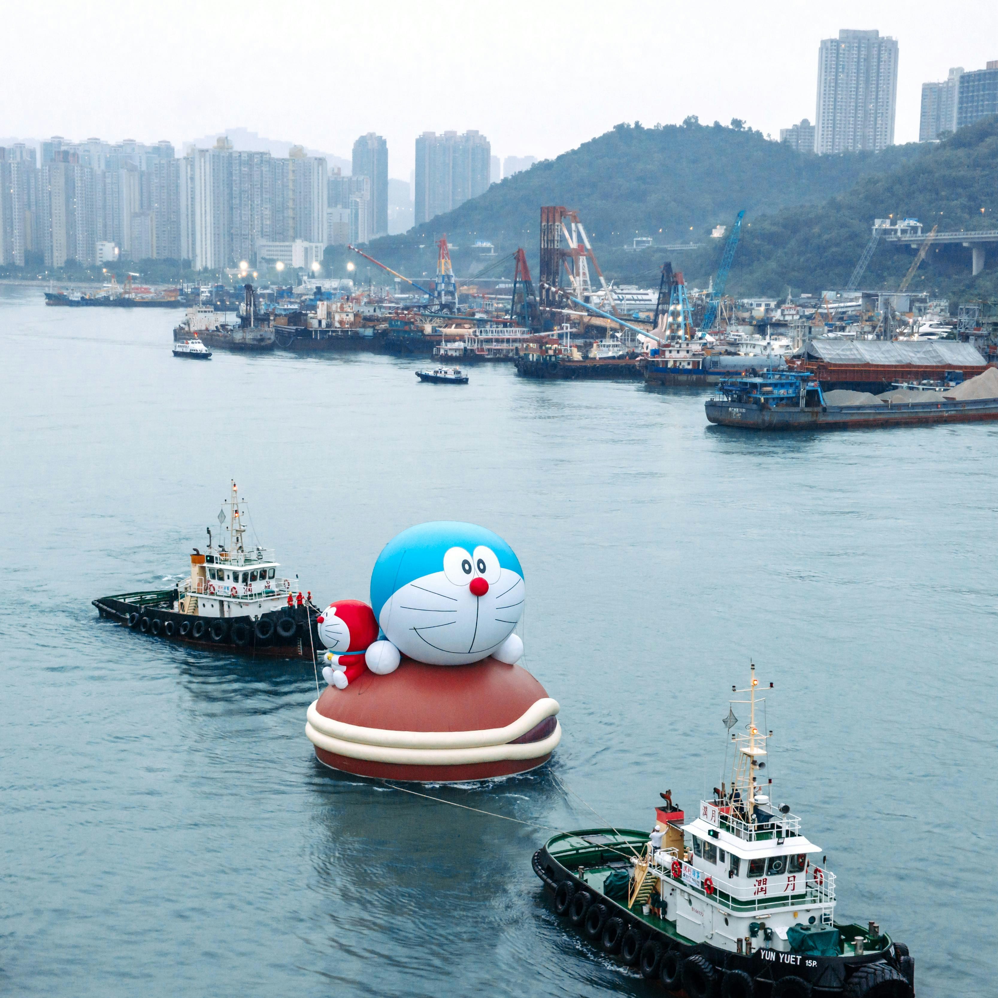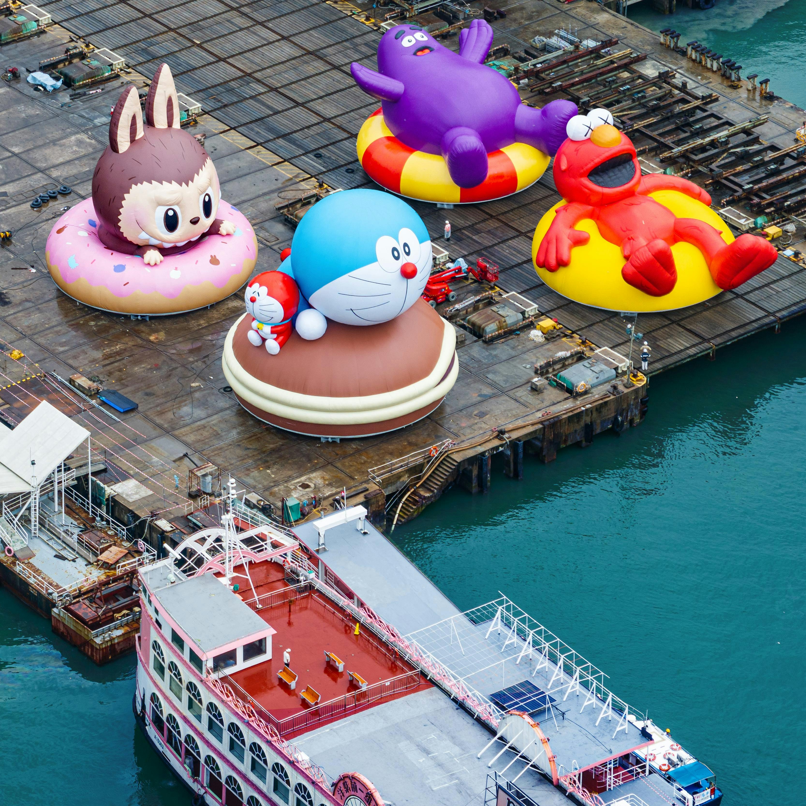 ドラえもんからKAWS、ラブブまで。香港、ビクトリア・ハーバーに巨大インフレータブルが集結