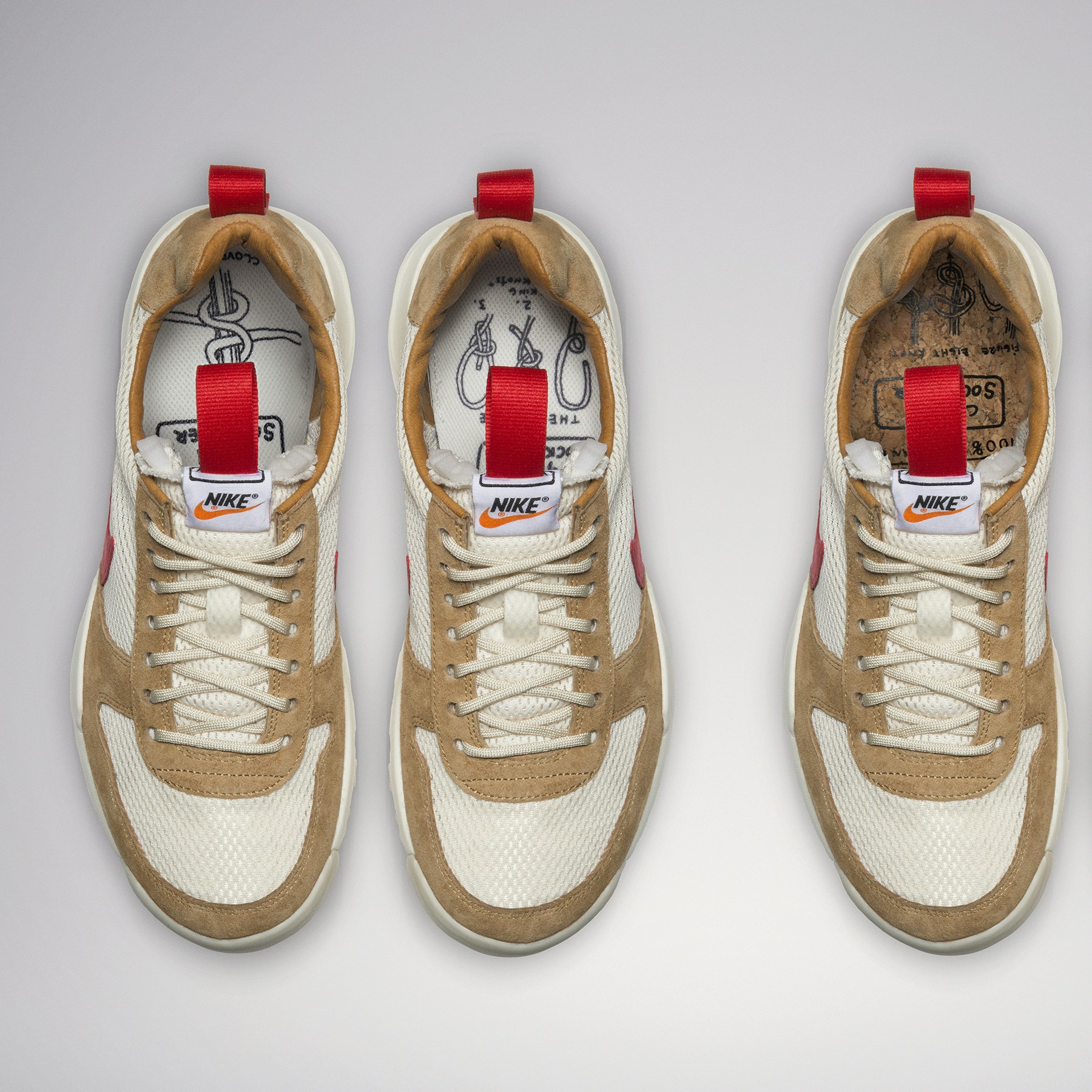 トム・サックスがナイキとコラボレーションしたオリジナルシューズは、「宇宙旅行に求められる精神と肉体的要素」をテーマに開かれた展示会「Space Camp 2.0:Mars」(2012)で発表されたものが最初。サックスはそのシューズを自ら長期にわたって使用し、5年を経た今、耐久性の向上などの改良を加えて、今回の第二弾を発表するに至った。サックスは、「汚くなるまでシューズを履いて、『これが私の履いたシューズです。私の生きた証、これまでに私が経験してきた証拠です』と語って欲しい」と述べている。