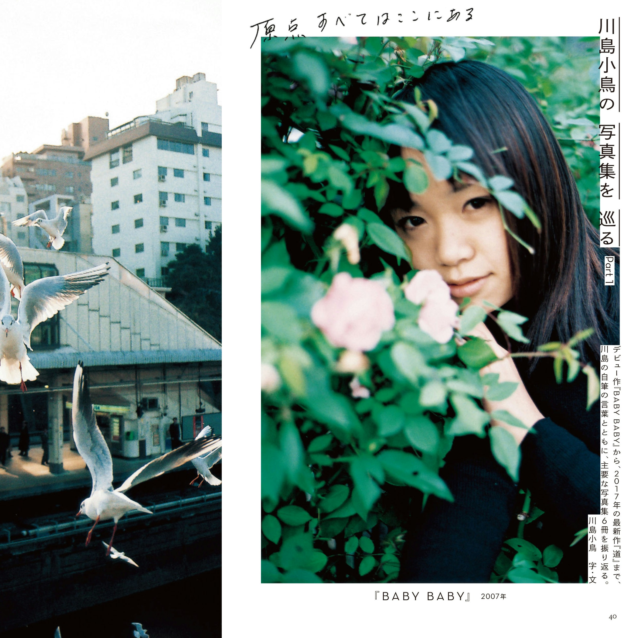 巻頭の20ページにわたる撮り下ろしでは、女優・石田ゆり子を被写体にしたフォトストーリーを掲載。谷川俊太郎、祖父江慎、峯田和伸(銀杏BOYZ)らのコメントともにたっぷりのビジュアルで既刊写真集を振り返るビジュアルページ「川島小鳥の写真集をめぐる」。公私共に親交の深い岡村靖幸へのインタビュー。さらに、川島のミューズである俳優・太賀と女優・森川葵が初共演した写真集『昨日の君、明日のあなた』の特別付録も。