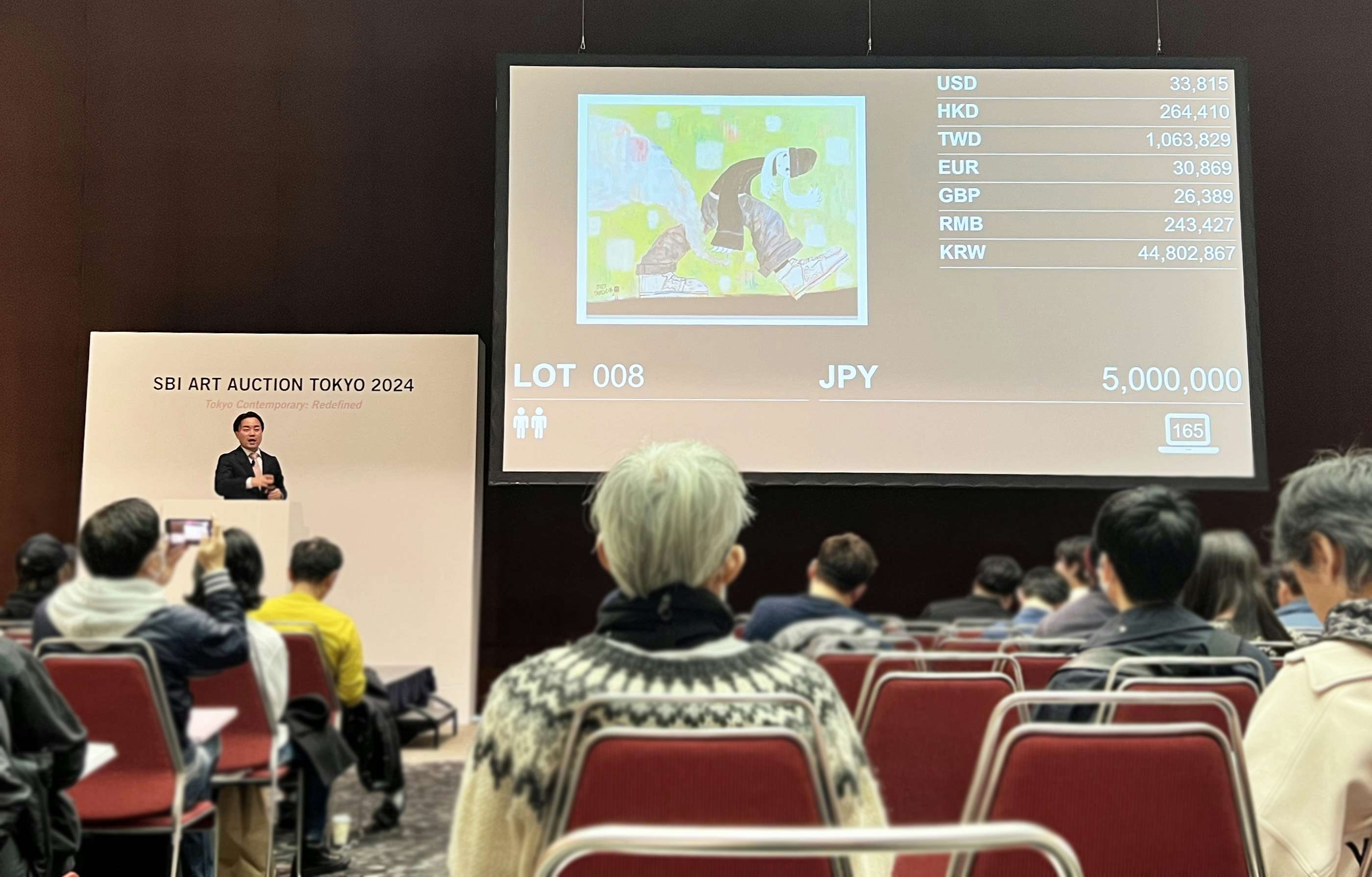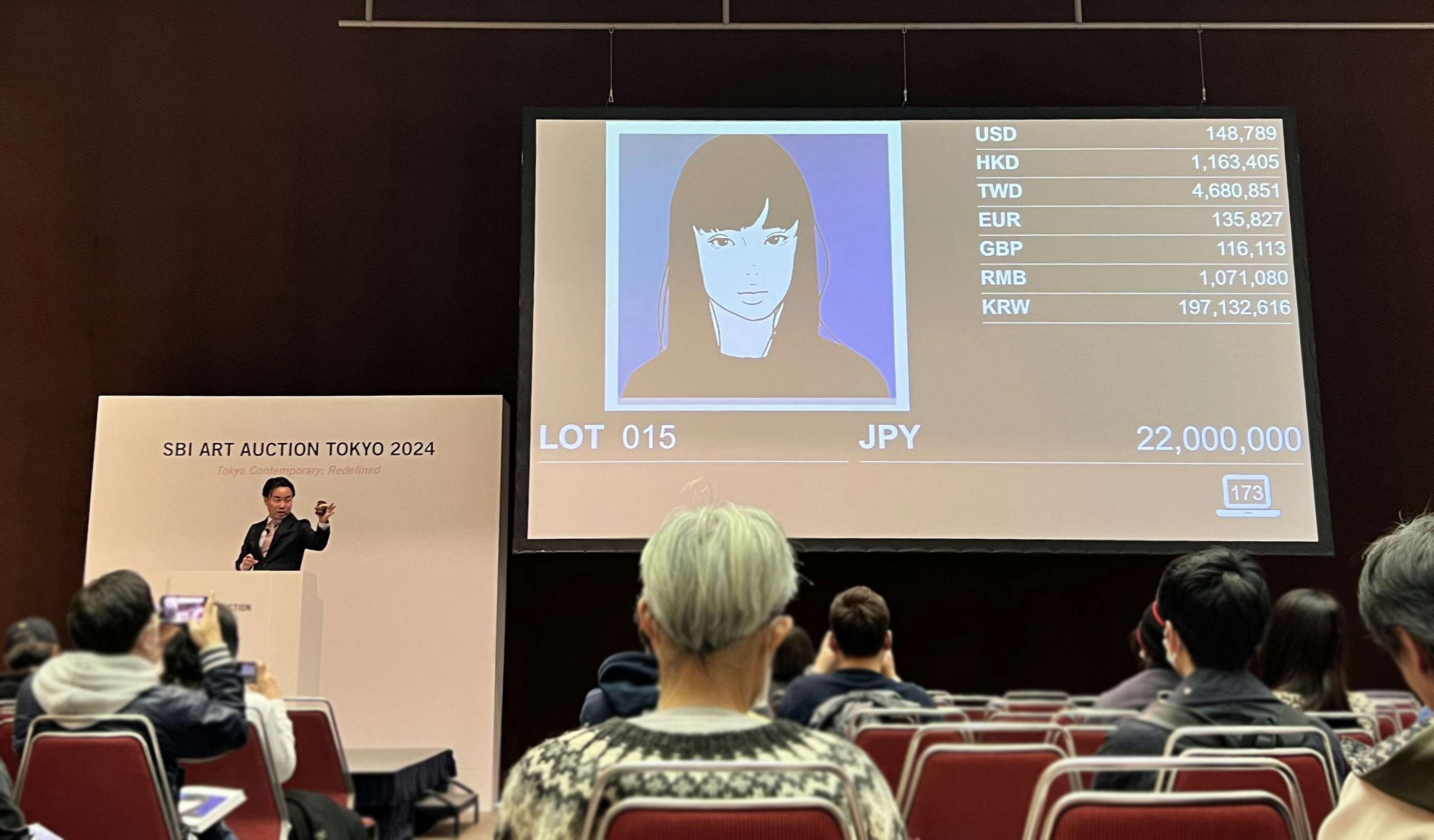 オークション会場より、KYNE《Untitled》(2017)落札の様子