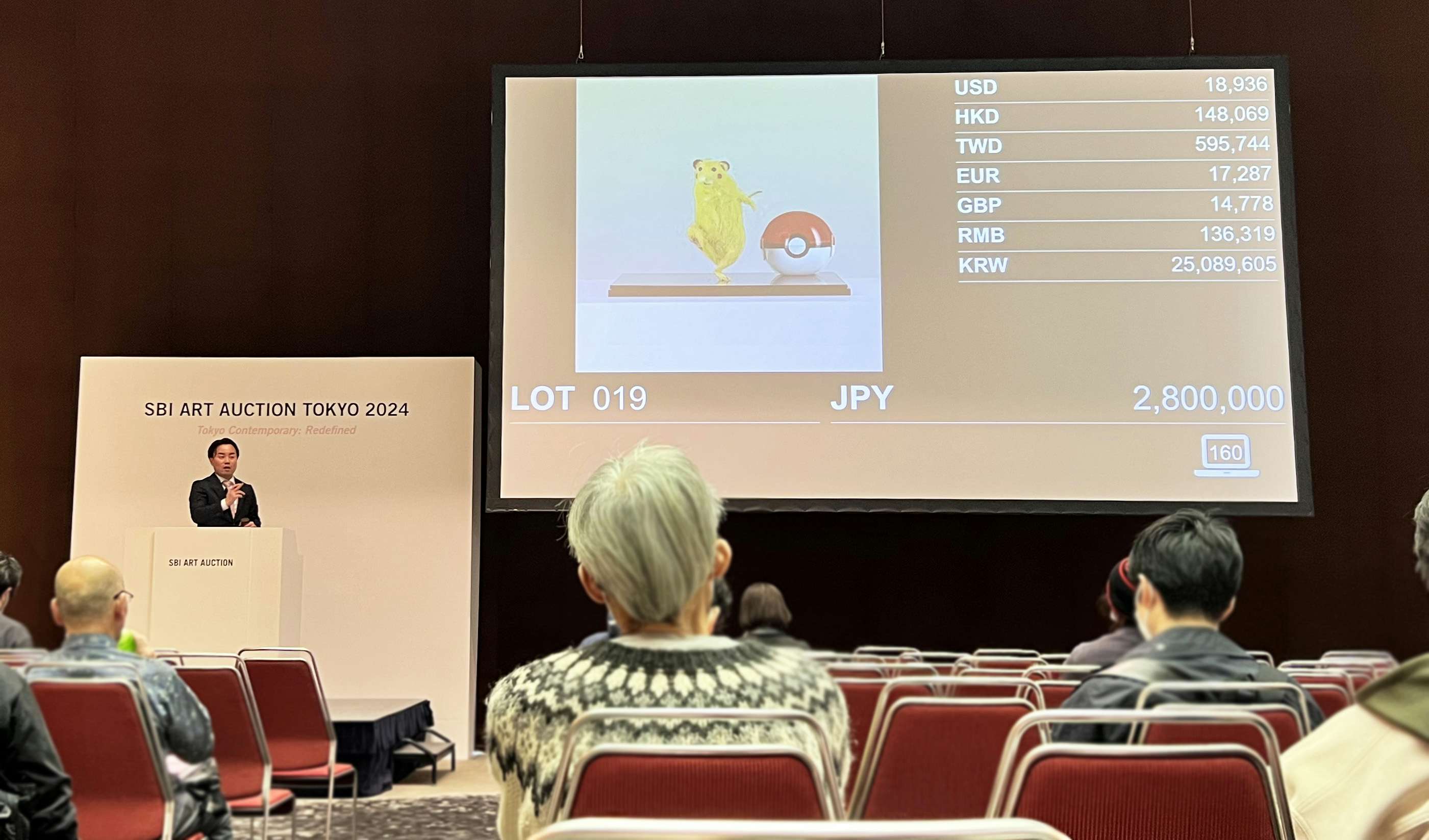 オークション会場より、Chim↑Pom from Smappa!Group《SUPER RAT》(2006/2011)落札の様子