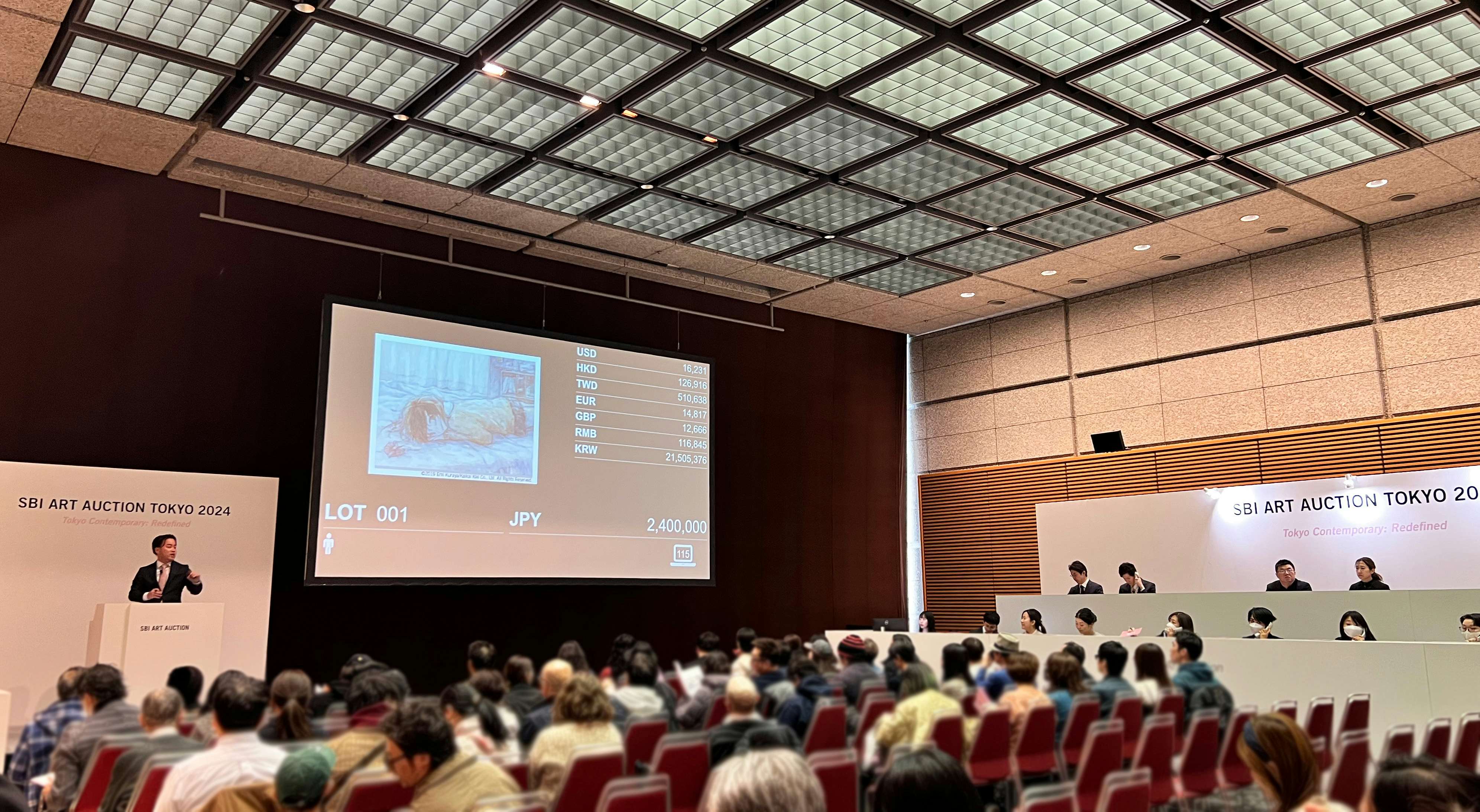 オークション会場より、谷口正造《作品》(2016)落札の様子
