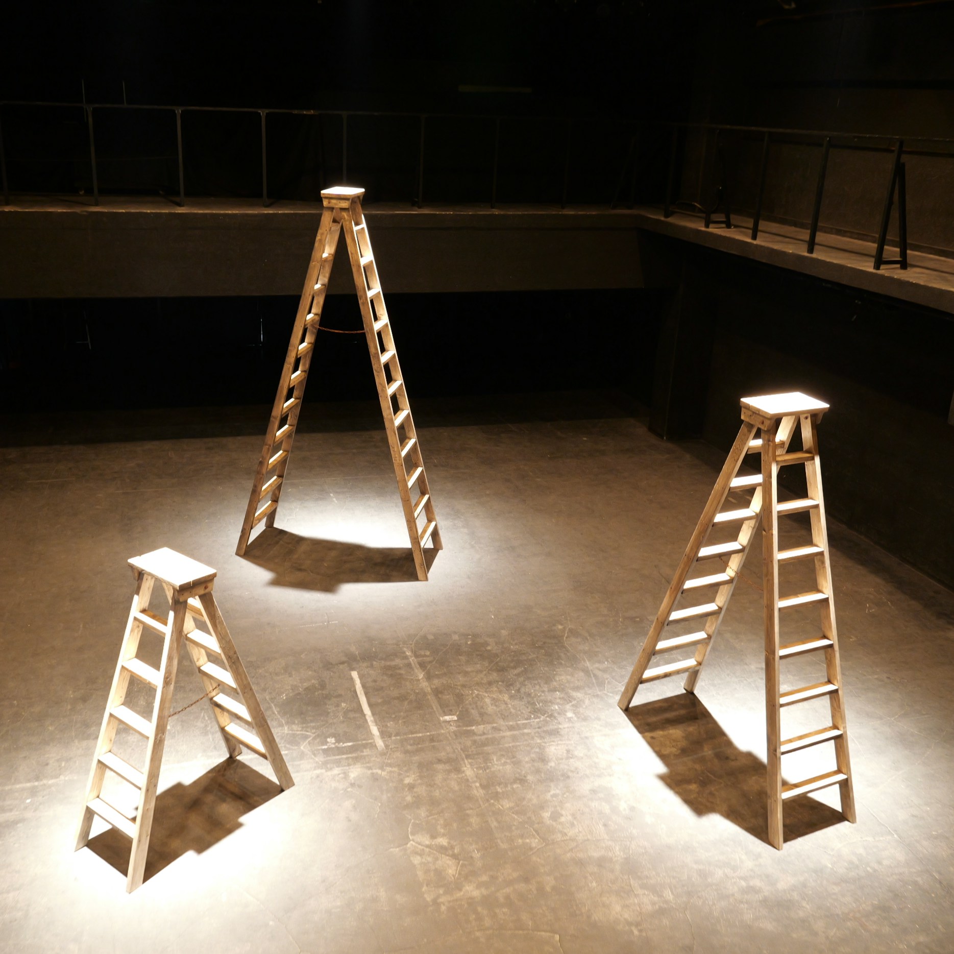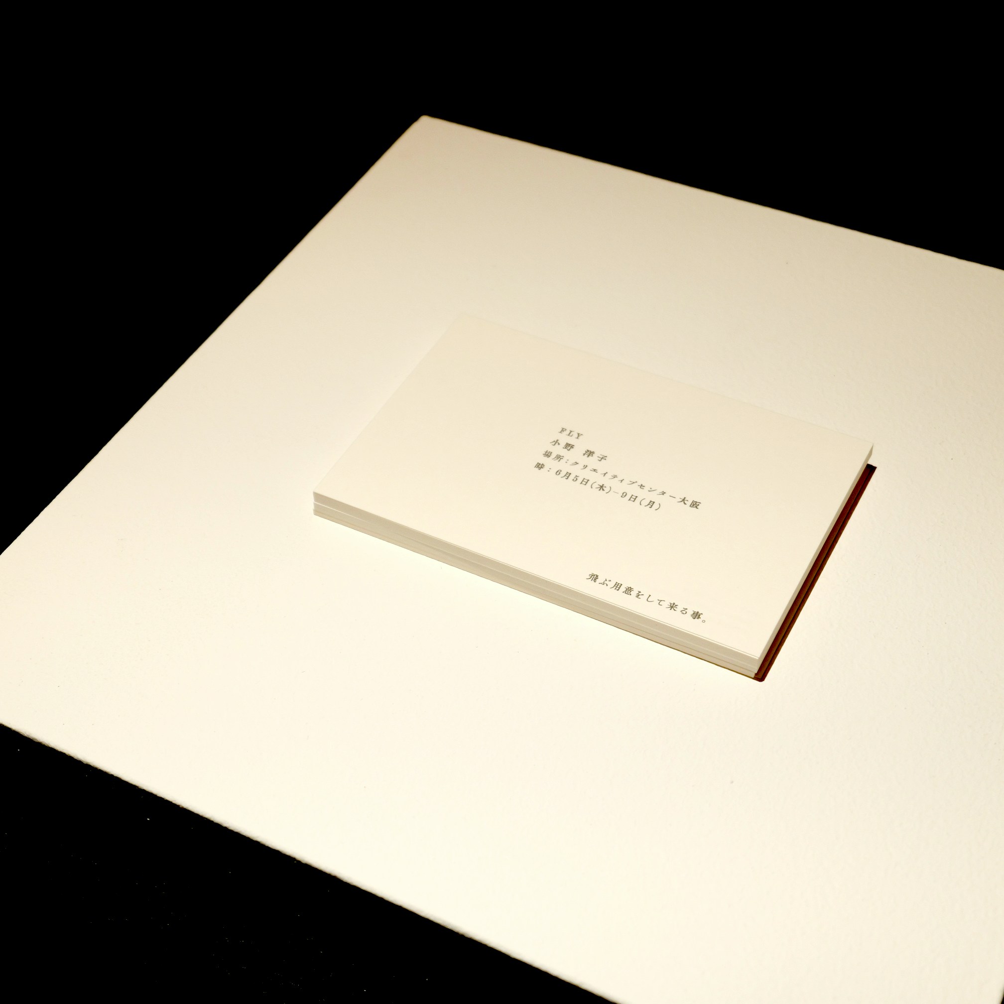 1階から2階にかけての吹き抜けとなっている展示空間「ブラックチェンバー」では、東京の小山登美夫ギャラリーによるオノ・ヨーコ《FLY》(1963/2025)が展示されている。会場には3つのハシゴが置かれており、また出入口には「小野洋子」の署名と「飛ぶ用意をして来る事。」というメッセージが記された、持ち帰ることができるカードが置かれている。オノのメッセージを読んでからこの空間に置かれたハシゴを見れば、このハシゴを昇ったあとに飛び降りる自分の姿を想像をするはずだ。実際に飛ぶことはなくとも、人はだれもが飛ぶことを想像することができる、そんなメッセージが込められているようにも感じられる。