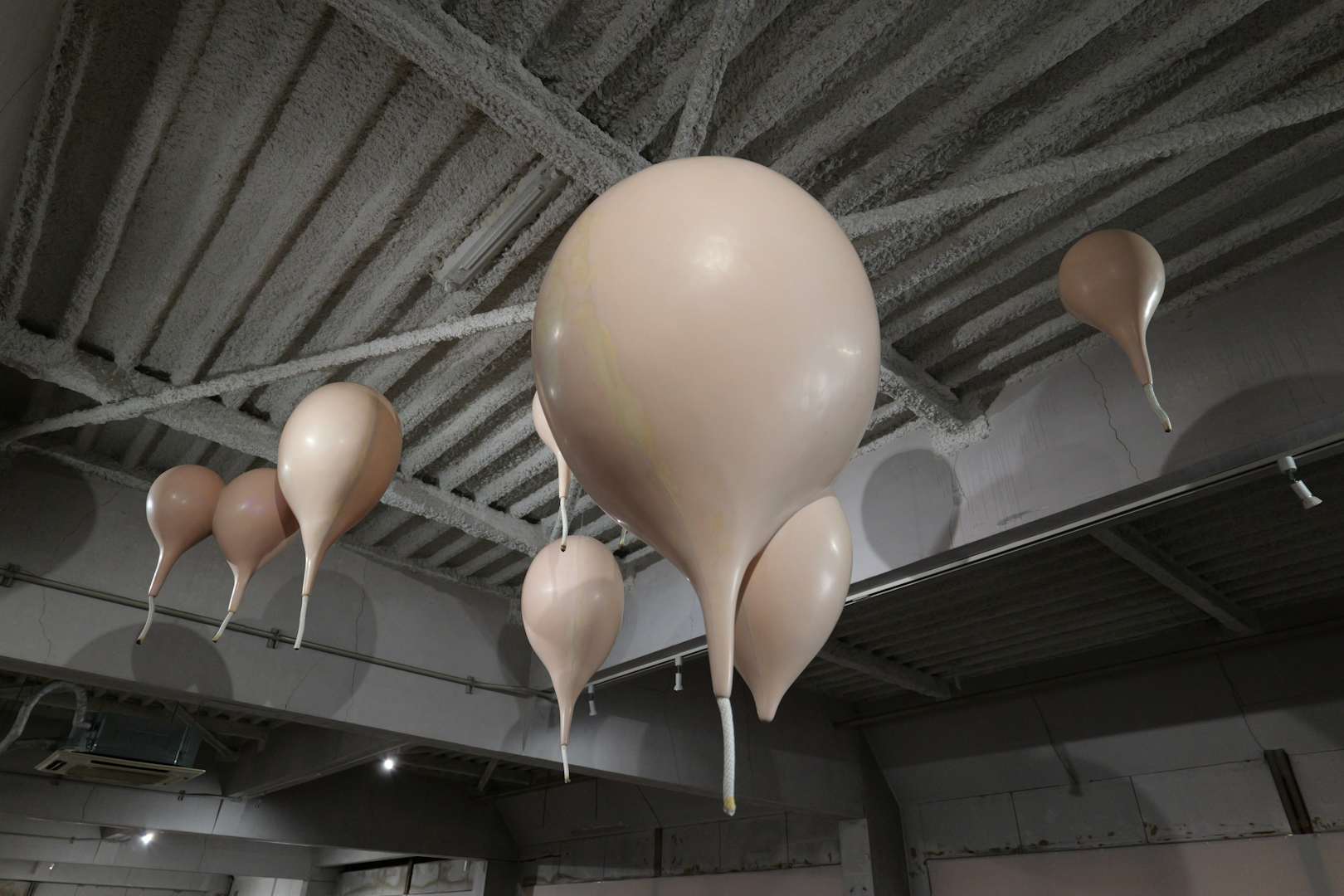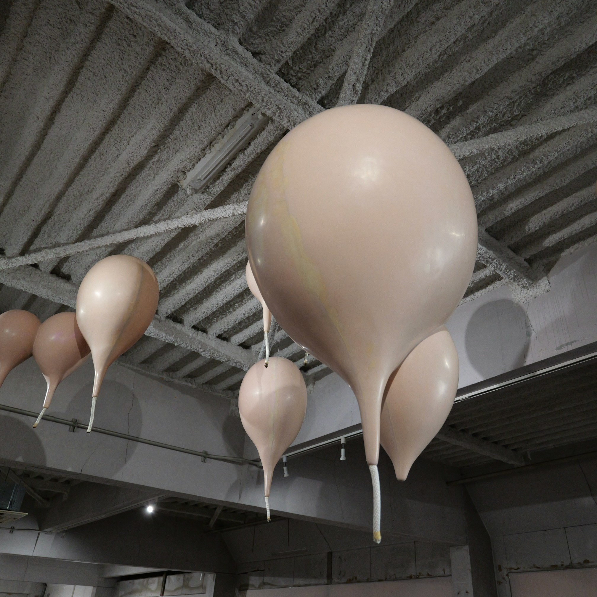 京都のFINCH ARTSは福岡道雄(1936〜2023)の初期代表作《ピンクバルーン》(1968)を出展している。本作は、彫刻の持つ硬質さや男性性からの脱却を目指した作品で、風船のようなやわらかなフォルムと、軽量なFRP素材で制作されている。ほかにも《馬鈴薯》(2003)、《立つ蚯蚓》(2004)といった福岡の大型彫刻も展示されている。