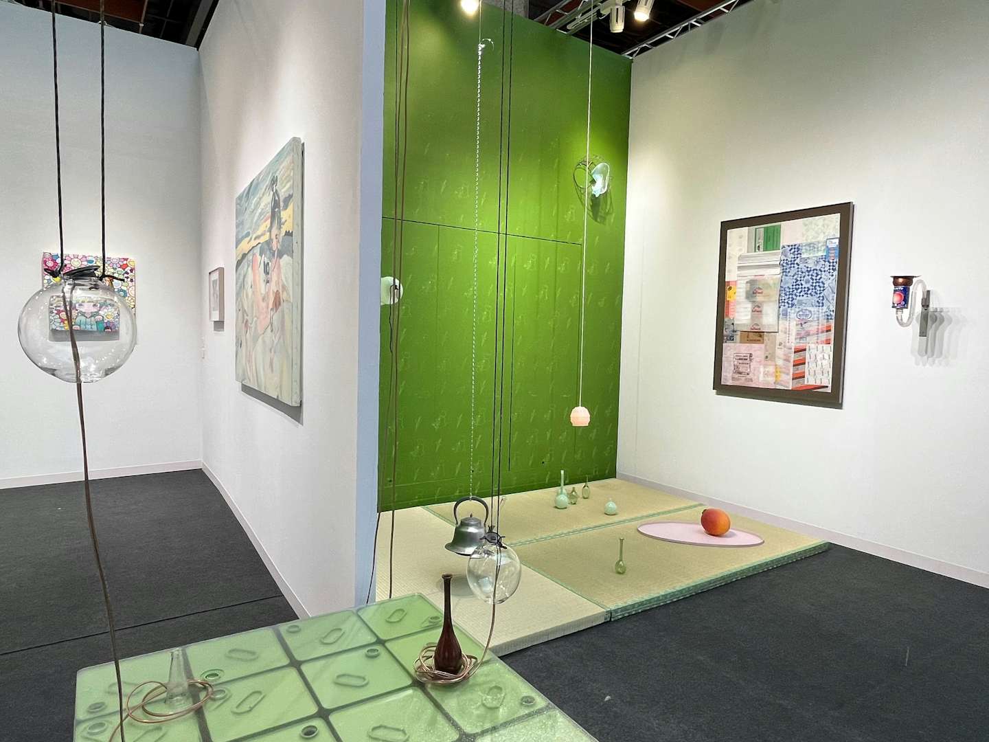 12年ぶりの参加となった昨年に続き、今年も同フェアに参加するペロタンは、台湾中部・員林鎮出身でロンドンをベースとする1990年生まれのアーティスト、黃麗音(Steph Huang)のインスターレーションを会場で展開した。物や空間の文化的歴史を通して、労働、価値、商業といったテーマをインスタレーションで展開する黃。ポリタンク、畳、ヤカン、包装紙などを組み合わせたインスタレーションは、コマーシャルにあふれた会場内で異彩を放っていた。