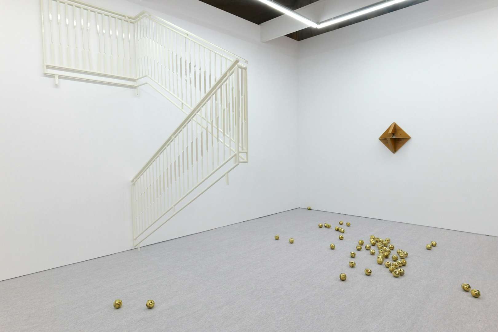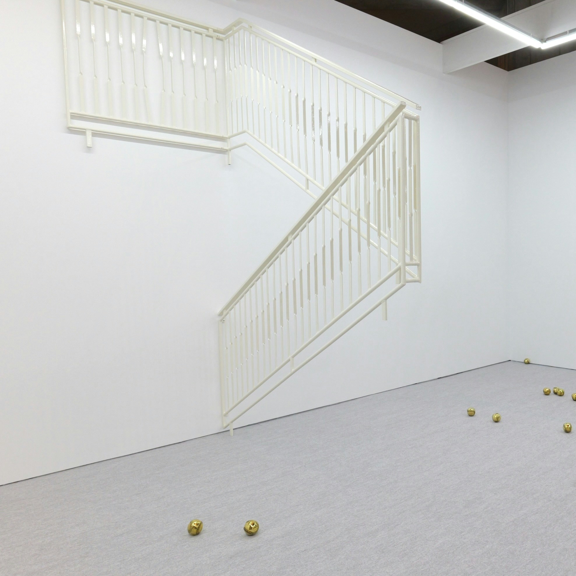 タカ・イシイギャラリー(東京)はGalerie Martin Janda(ウィーン)と組み、メキシコ出身のマリオ・ガルシア・トレスとスロバキア出身のローマン・オンダックによる二人展を開催。オンダックが展示空間に設置した階段の手すりと、ガルシア・トレスによる金色の野球ボールを組み合わせたインスタレーションが注目を集めていた。