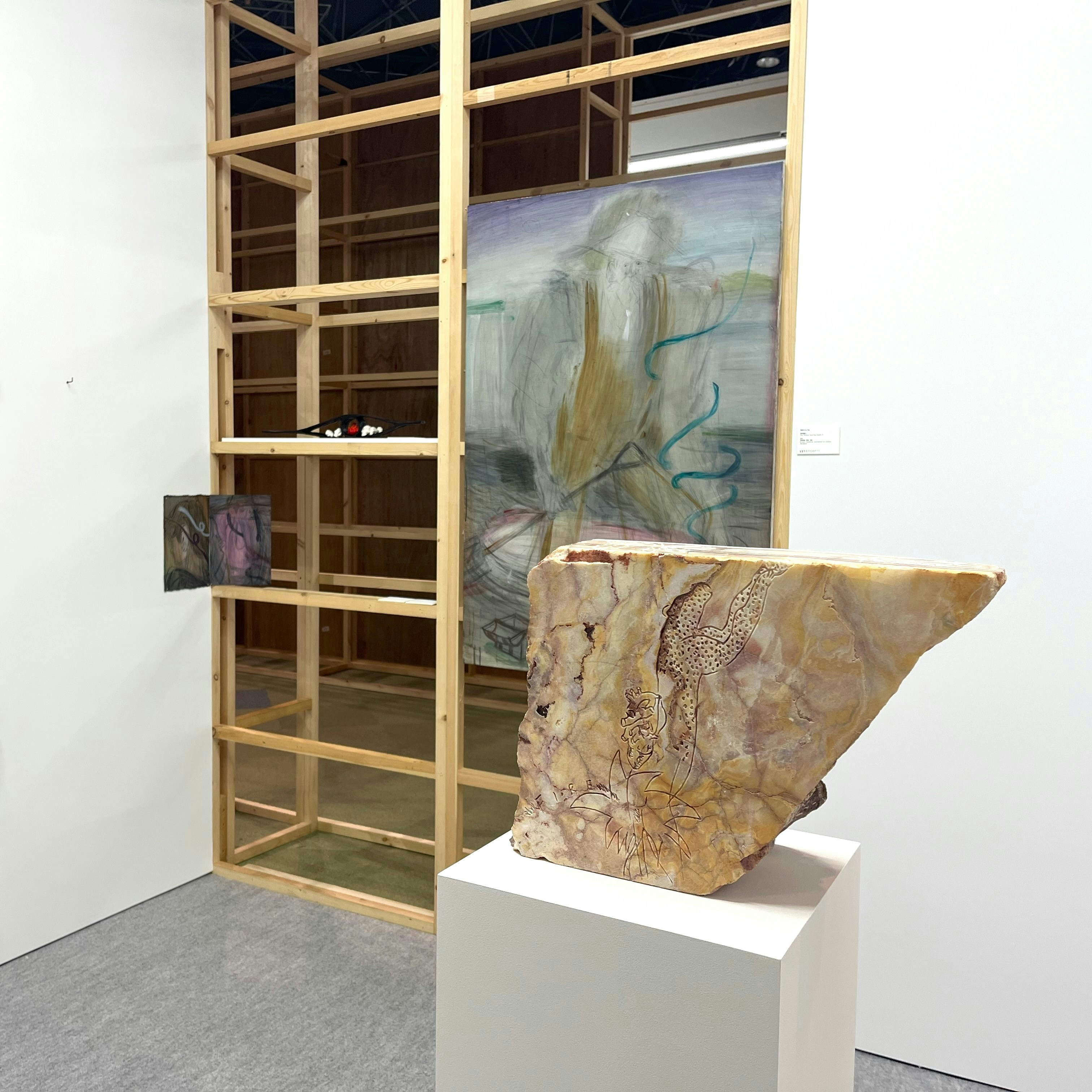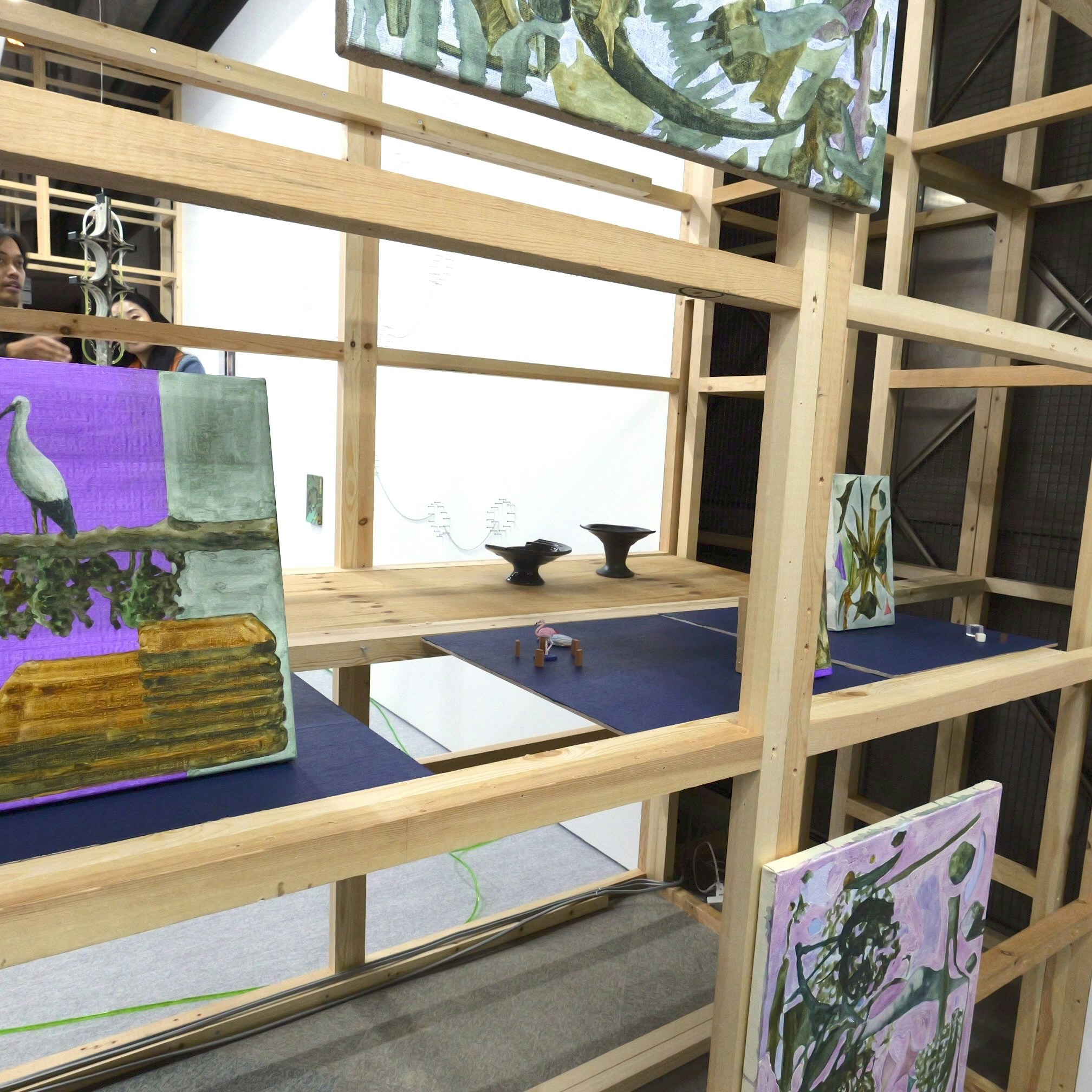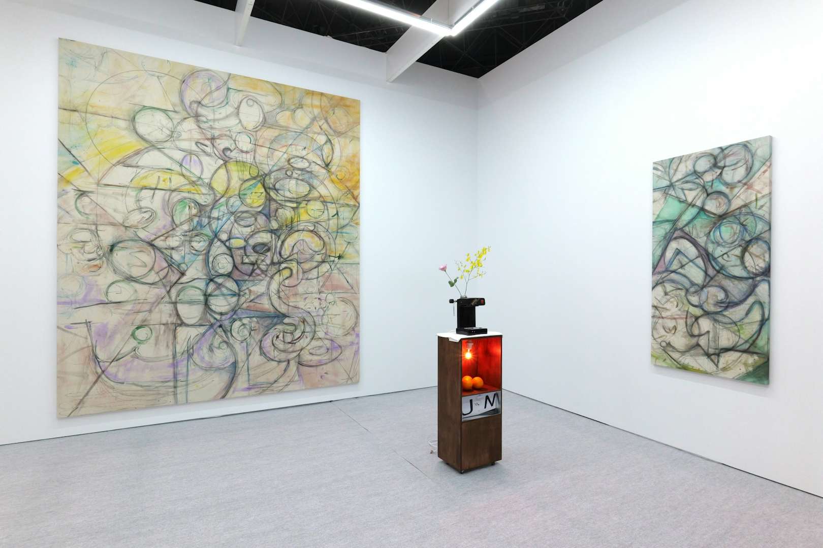 PARCEL(東京)とTHE SHOPHOUSE(香港)のブースでは、絵画とセラミックを軸に、ジョセフ・ジョーンズ、マサミツ、スティーブ・ハリソン、橋本知成の4名のアーティストを紹介。橋本の金属的な表面が現れた陶作品と、都市の色彩を独特の構図で表現するマサミツのここでしかない共演が楽しめる。
