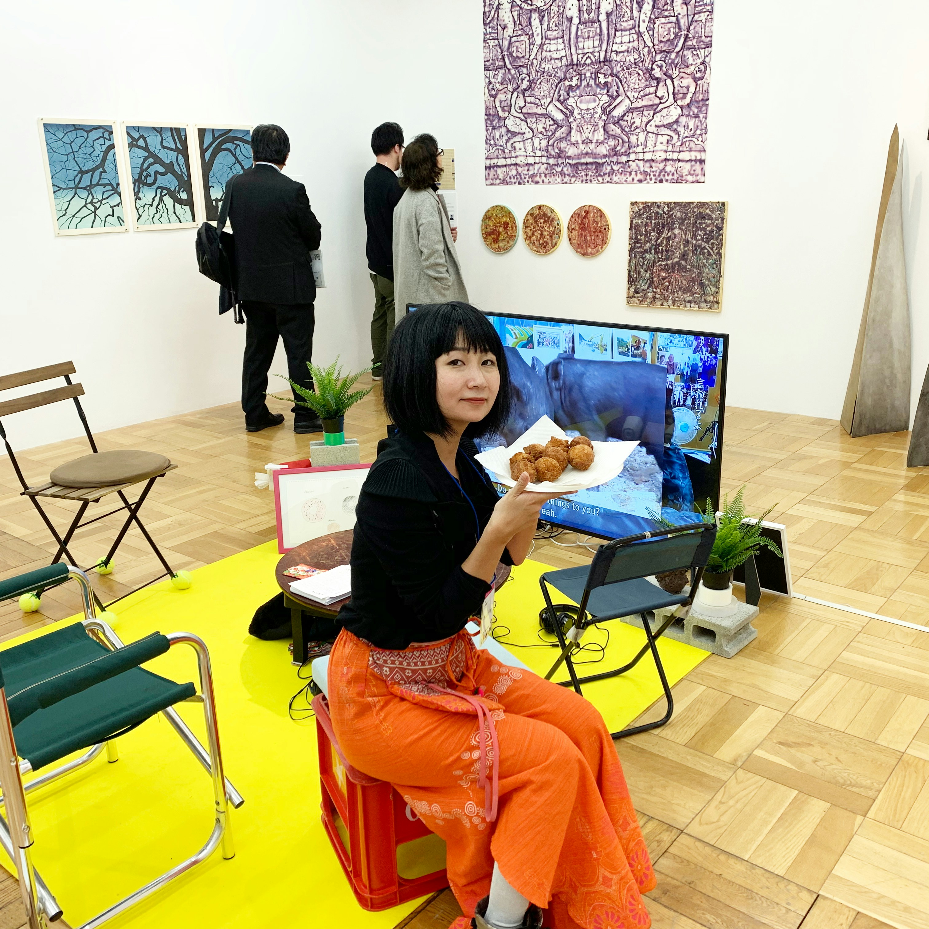 まず紹介するのは、《アメリカのドーナツと沖縄のドーナツを合体させて穴のない完璧なドーナツをつくる》を出品中の、ホンマエリとナブチからなるアーティストユニット「キュンチョメ」。本作は、「アメリカの象徴としてのドーナツの穴に、沖縄名物のサーターアンダギーを入れることで、穴のない“完璧なドーナツ”をつくる」というキュンチョメのプランを聞いた沖縄の人々が、同地やアメリカに対する思いを語るというもの。3月9日、10日の13時頃(予定)より、実際にドーナツやサーターアンダギーを食べながら作品を鑑賞できる。