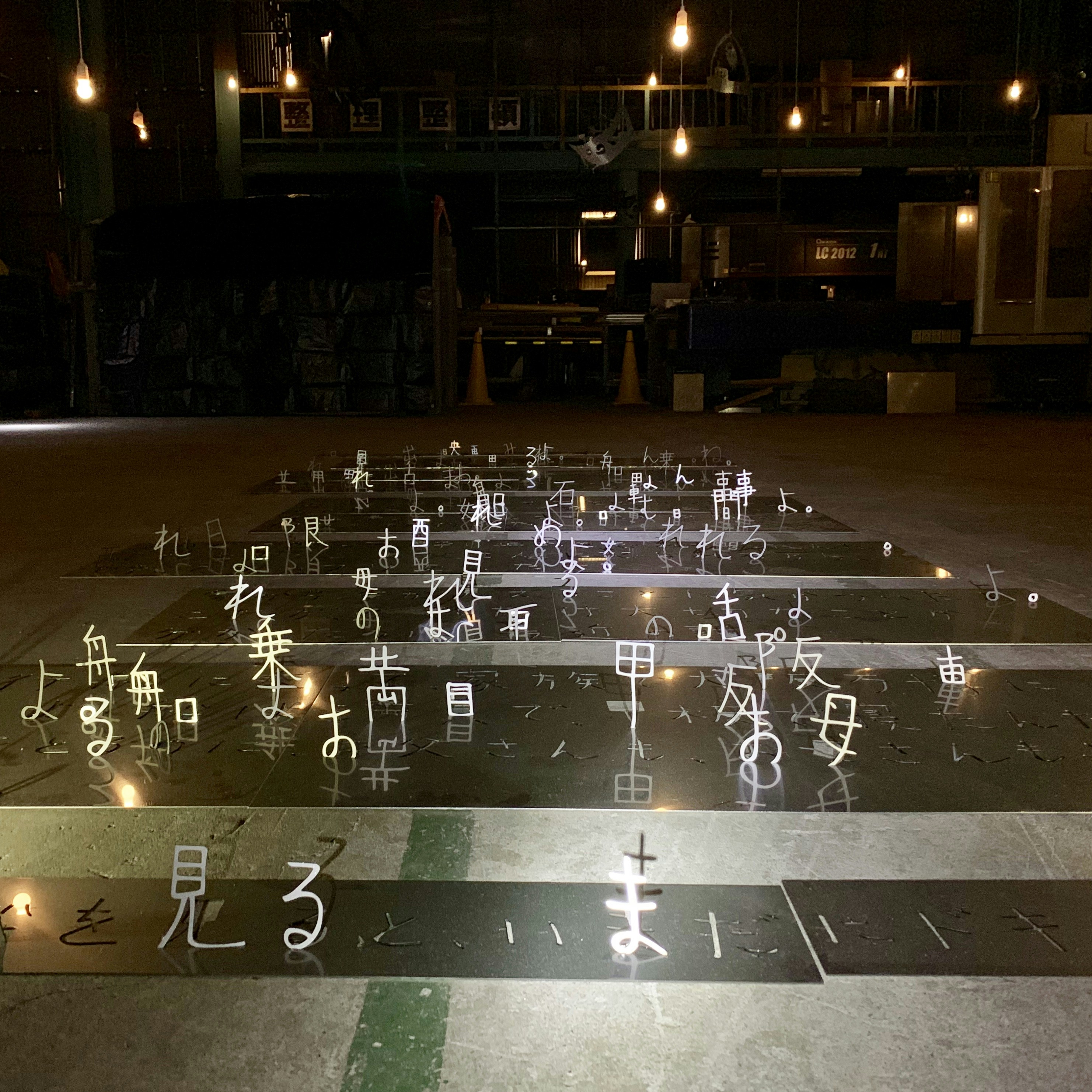 例えばステンレス板金加工に特化した大伸ステンレスでは、松山在住の牛島光太郎が「海」や「船」といった物事にまつわる記憶について、11人の社員にインタビューを実施。《海の街》として工場の内部を「海」に見立て、インタビューで語られた内容を、ステンレスで立体化して展示した。床だけでなく天井からも吊るされた様々なオブジェ。鑑賞者は懐中電灯でそれらを照らすことで、そこには思いがけない光景が生まれる。また社員が自主的につくったという巨大な船がレーンから吊るされ、会場内で存在感を示していた。