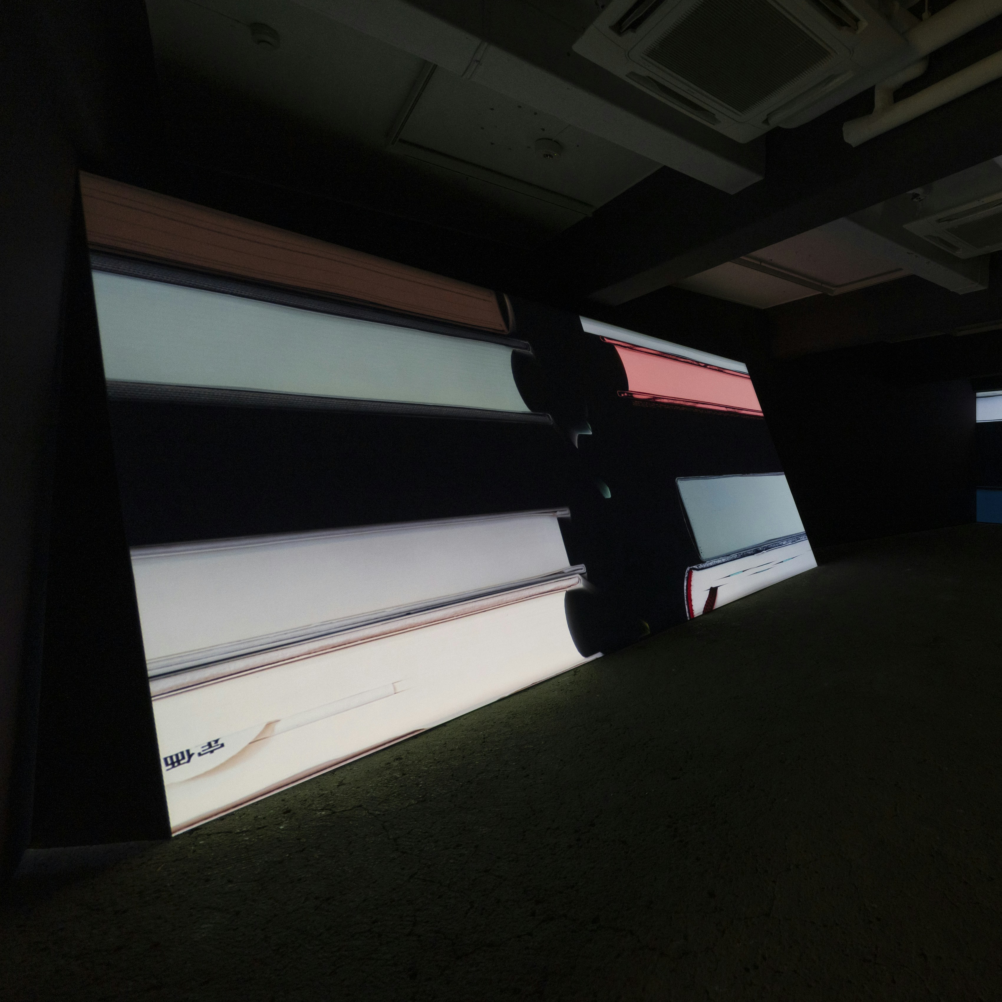 実際の風景や身近なものを3DCGで再現し、光学的法則から離れて変化する映像作品を制作してきた渡辺豪は、本展で本や洗濯物の山をモチーフにした新作映像インスタレーションを発表。それぞれに光が当たる順序や場所を組み換えることで、ものの空間性や時間性などを問いかける。