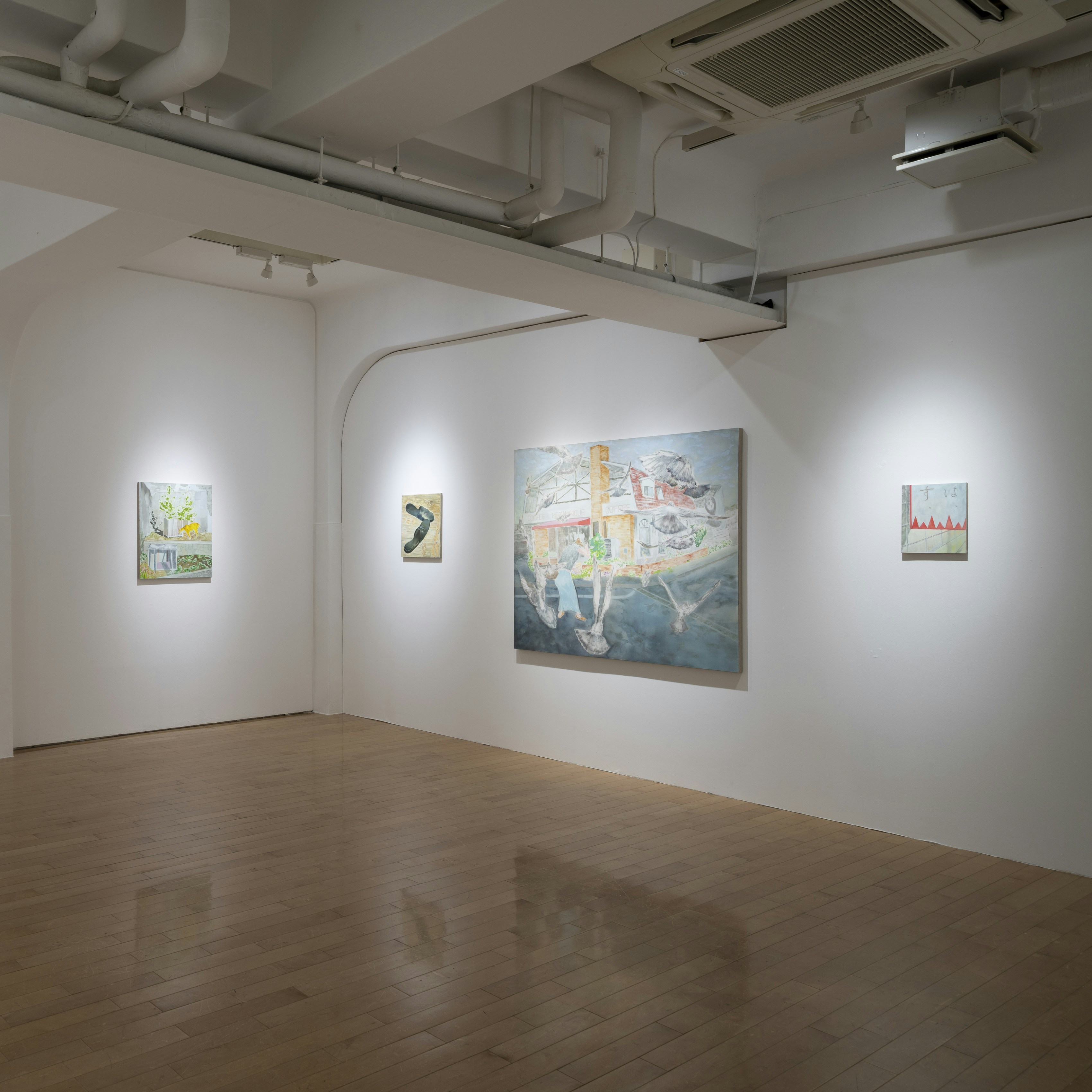 例えば田中秀介は、ある一点を極端に大きく描いて強調することで、歪んだ空間や奇妙な現実感をキャンバスに生みだす。本展では、町を歩いていて出会った風景を描いた絵画作品など新作を中心に展示している。