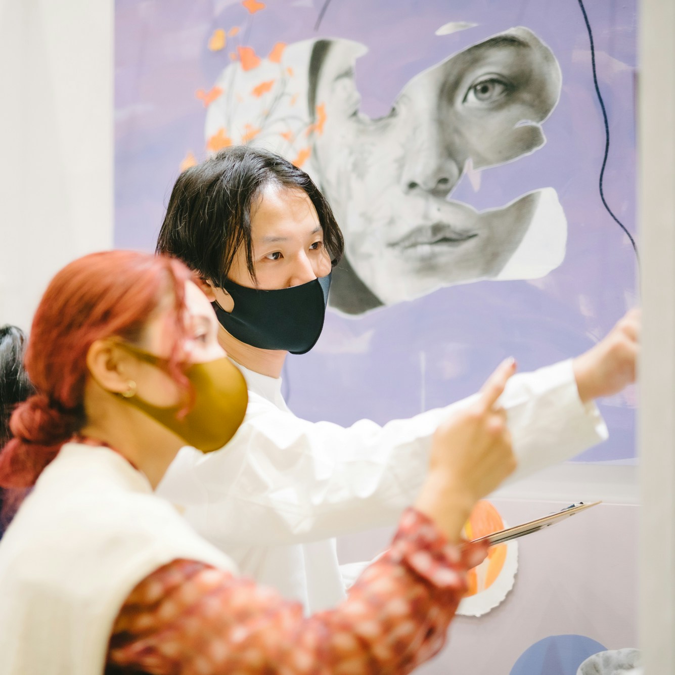 フェアのスタート以来、初めてのオンライン・リアルのハイブリッド開催となった今年のUNKNOWN ASIA。このシステムは海外から渡航できないアーティストなども含め、アーティストたちの期待にできるだけ応えたいという思いから実現したものだ。「オンラインだけではどうしてもコミュニケーションが一方通行になりがち。コロナ対策を万全にしつつ、実際のコミュニケーションをとってもらう現場をどれだけつくれるかが大事だ」(高橋)。