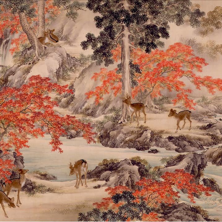 刺繍絵画とは、日本画家が描いた下絵をもとに、刺繍職人が針と糸で縫い上げた絵画を壁掛や衝立などに仕立てたもの。明治期を中心に、日本を代表する美術工芸品として盛んに製作され、技巧の限りが尽くされた作品群は日本刺繍の最高峰とも評されている。