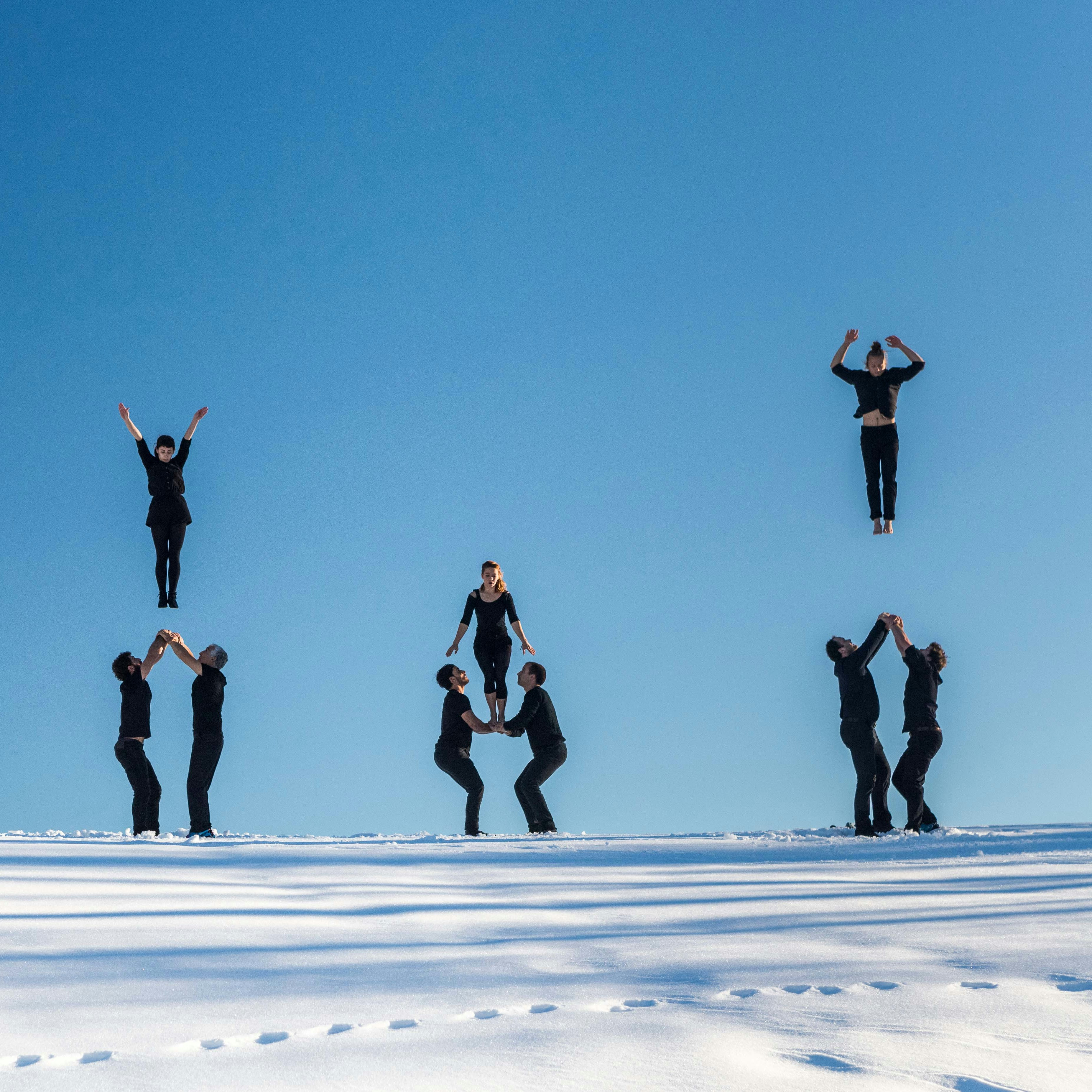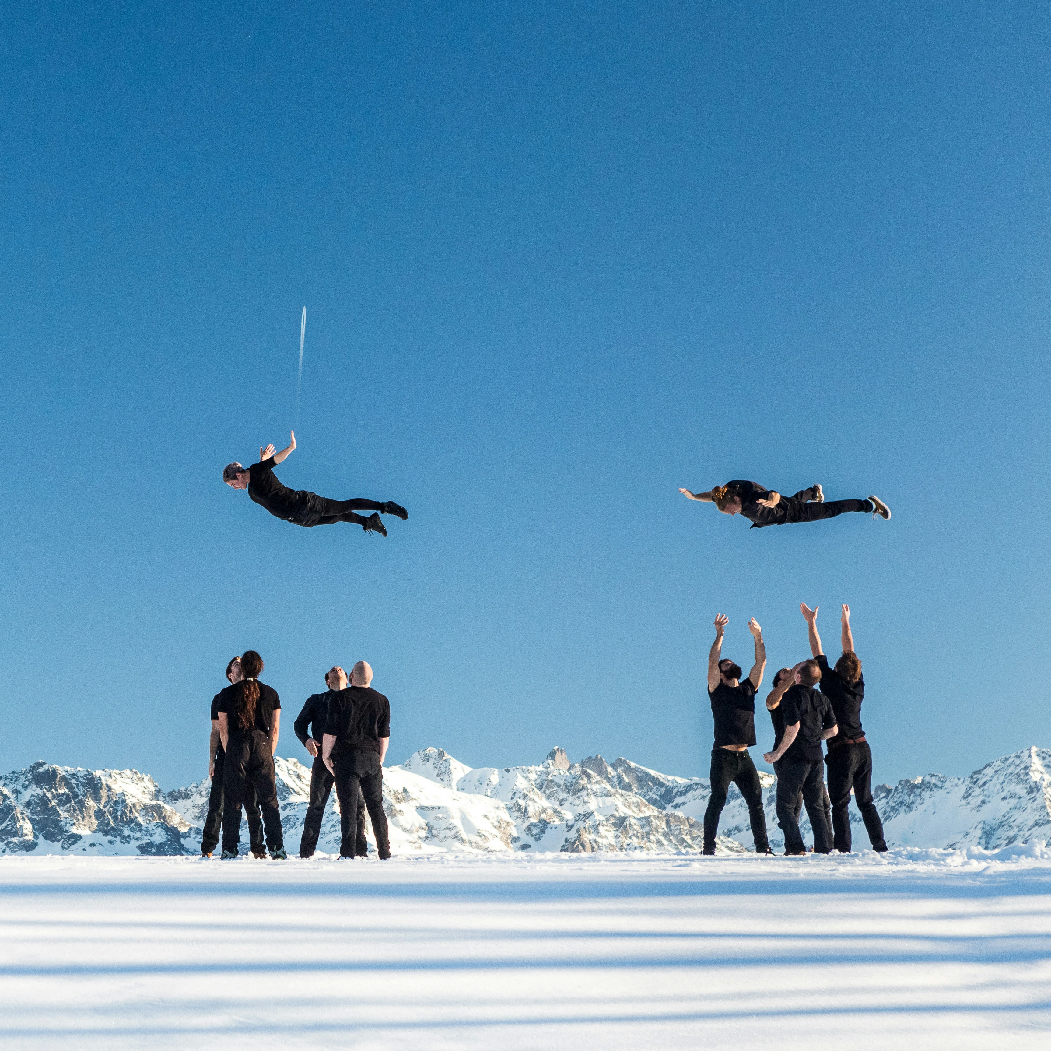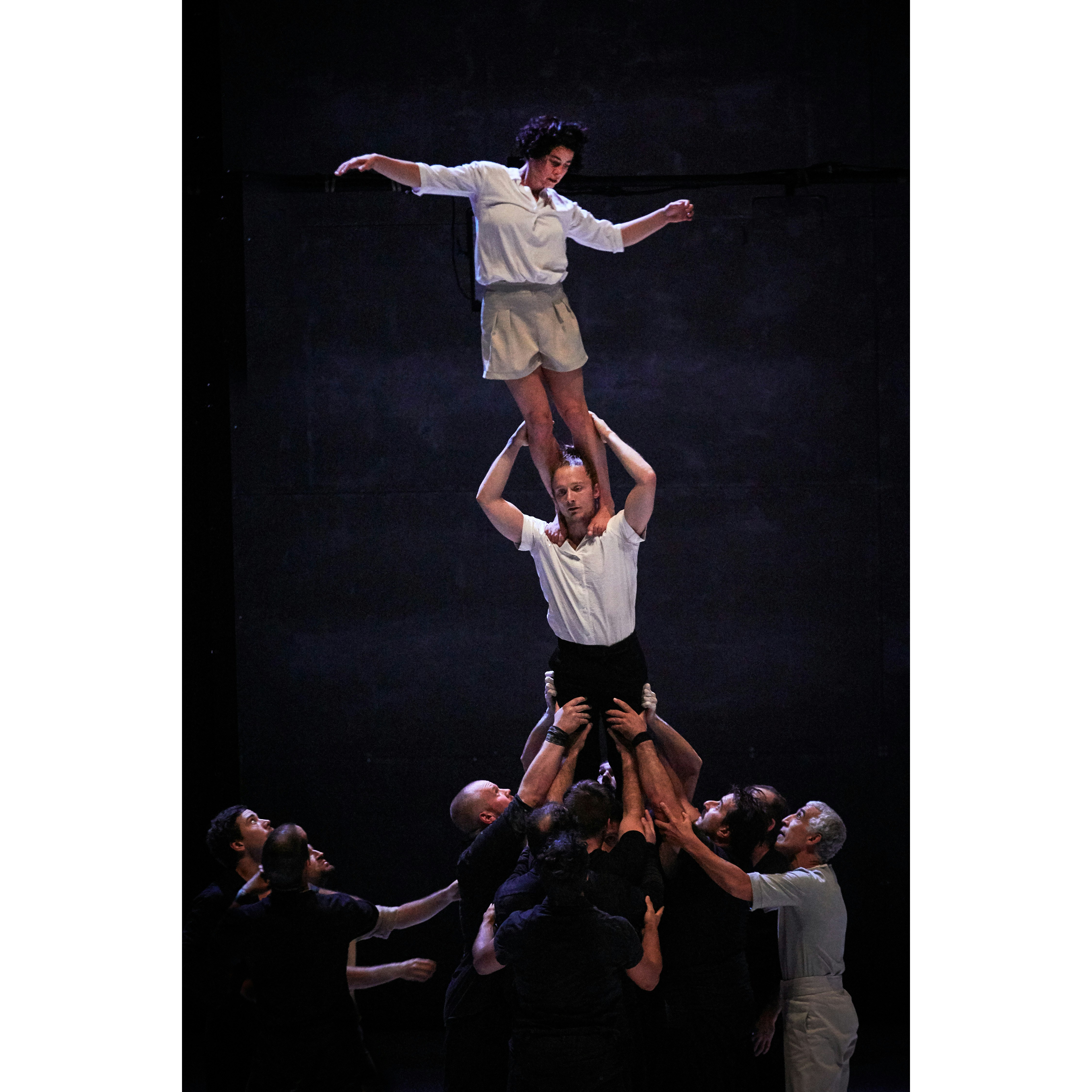 舞台美術が一切ない舞台上で、19名のアーティストが空を舞うムクドリの群れのように、抜群のチームワークで連なり、飛び、空中で身体をひるがえしながら、滑らかに美しい光景を描きだす。お互いを信頼し、身体を預け、飛び込み、完璧にシンクロナイズするその姿は、コロナ禍によるディスタンスが当たり前となったいまの時代に、人と人が手をつなぎともに生きる素晴らしさを思い出させてくれるものであり、いわば人生賛歌とも言える。