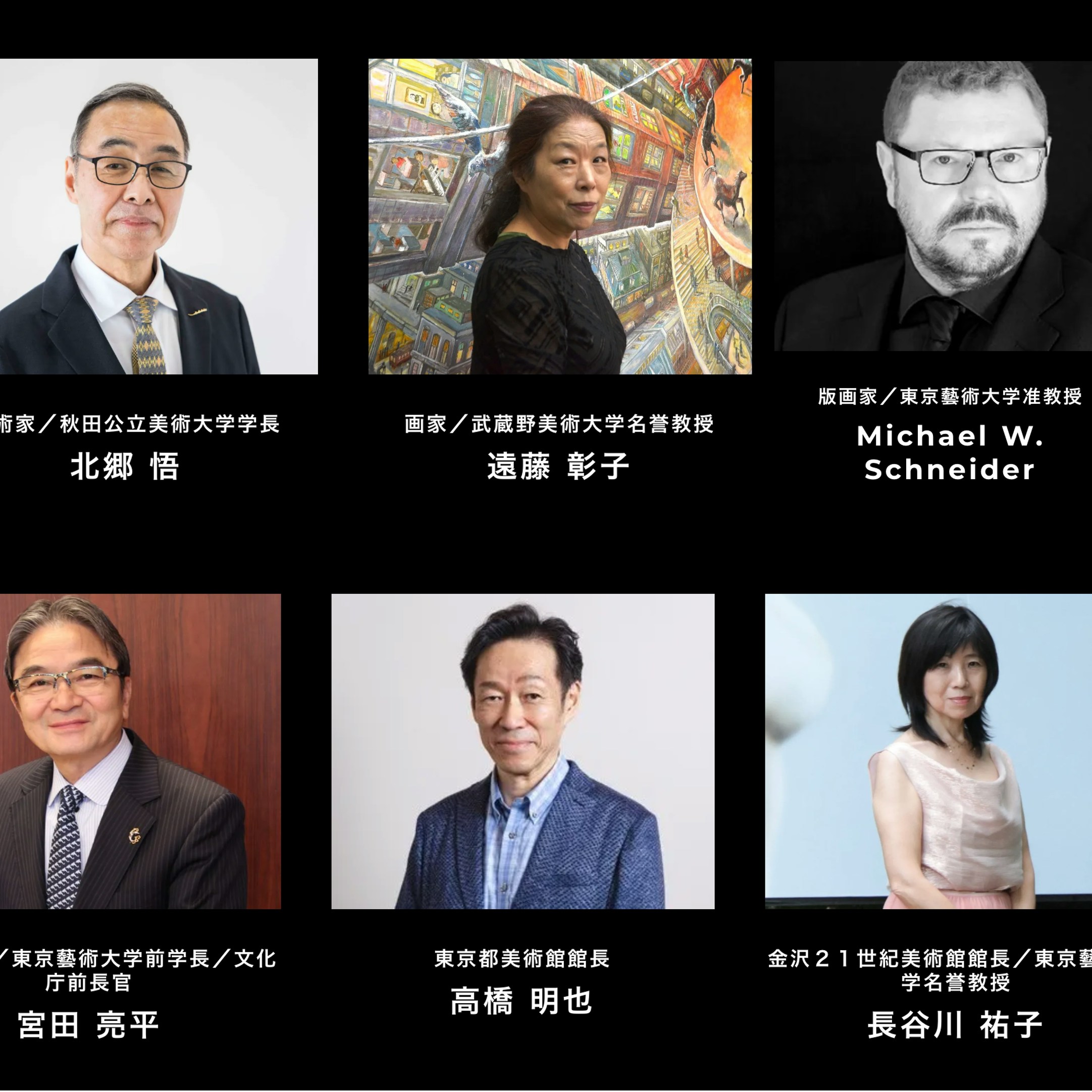 今回の審査員は、保科豊巳(画家/東京藝術大学名誉教授)、北郷悟(美術家/秋田公立美術大学学長)、遠藤彰子(画家/武蔵野美術大学名誉教授)、Michael W. Schneider(版画家/東京藝術大学准教授)、JACK James(アーティスト/早稲田大学准教授)の5名が務める。最終審査では、宮田亮平(金工作家/東京藝術大学前学長/文化庁前長官)、高橋明也(東京都美術館館長)、長谷川祐子(金沢21世紀美術館館長/東京藝術大学名誉教授)の3名も加わる。