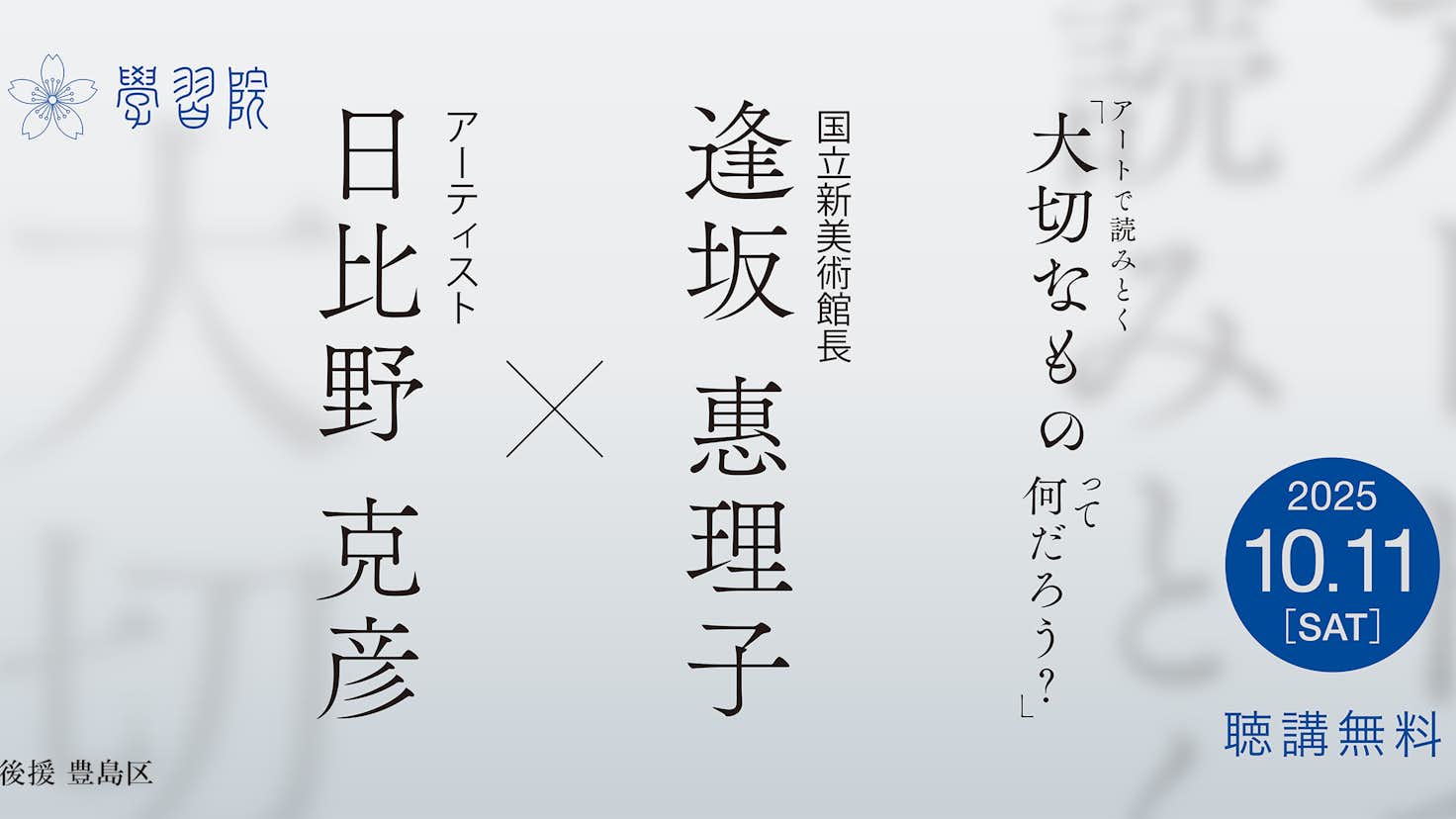 2027年に創立150周年を迎える学校法人学習院(以下、学習院)。同主催講演会「アートで読みとく“大切なものって何だろう?”」が、東京・目白の学習院目白キャンパスで10月11日に開催される。