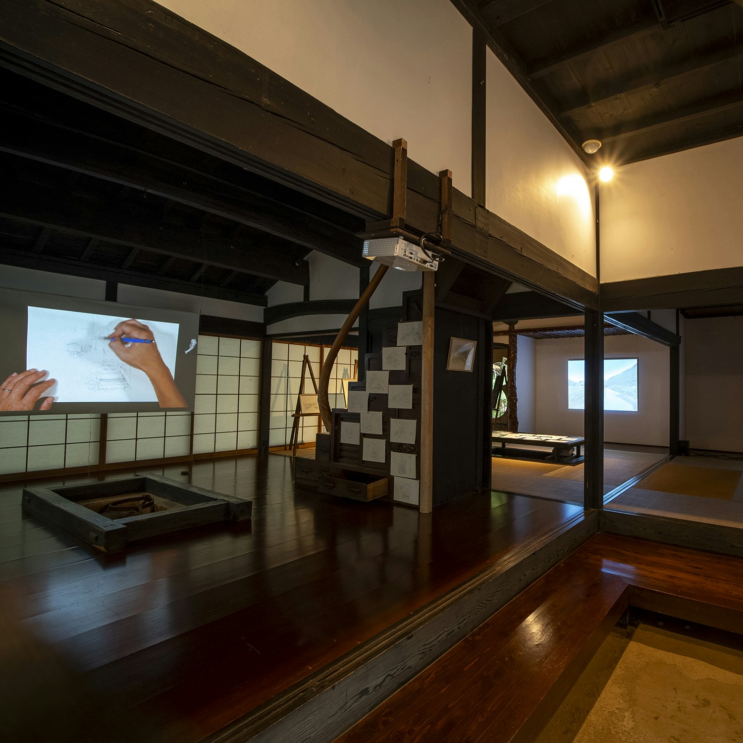 本展は、伝統芸能である能楽の要素を現代美術の思考と手法で再解釈し、「素謡(囃子や舞を伴わない独唱)」を軸に、築100年以上の古民家空間を活用したサウンド・インスタレーションとして展開される。妖怪「鵺(ぬえ)」を題材とし、過去と現在、現実と虚構を交錯させながら「鵺探し」の旅へと観客を誘う。