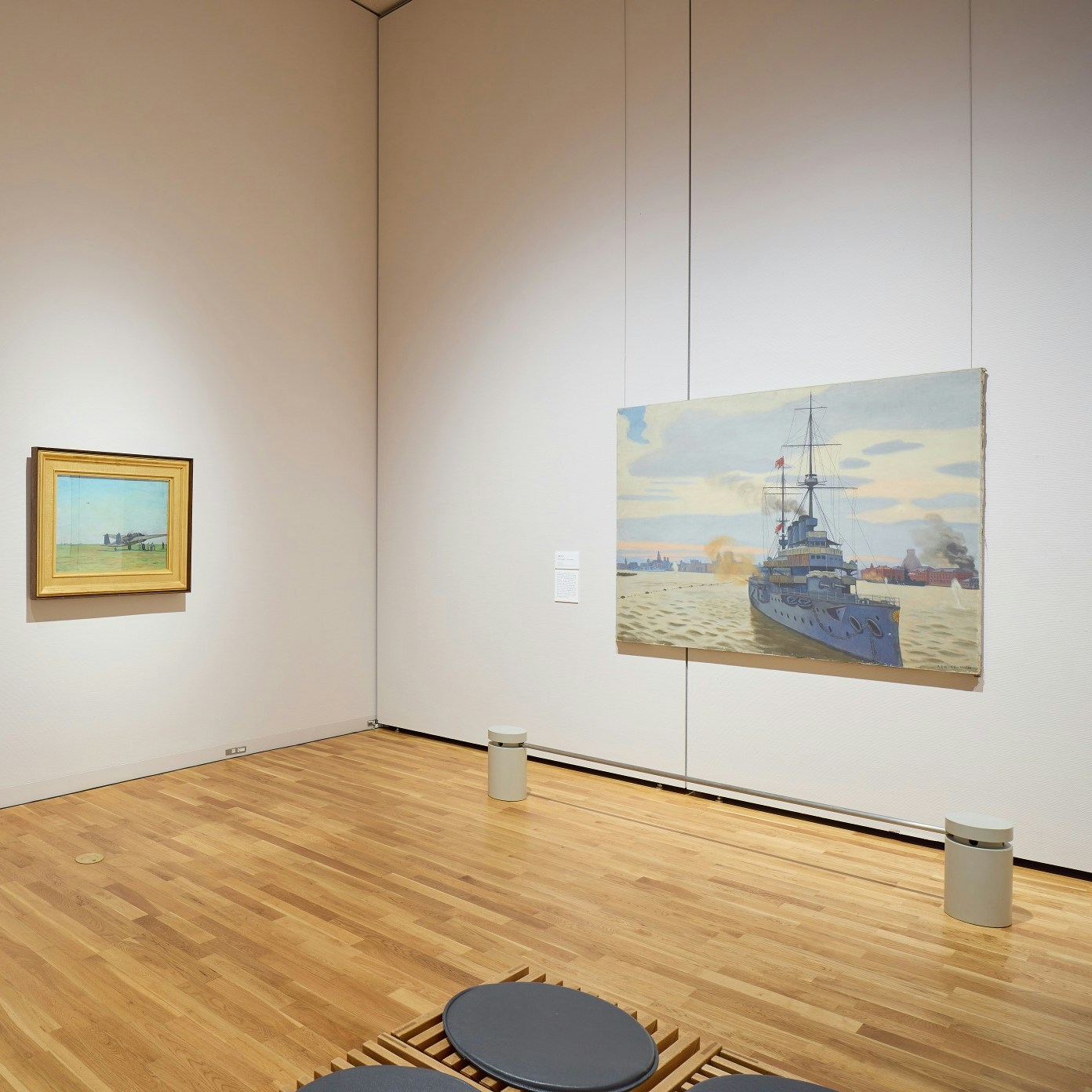 また柏亭は、写実の技術力の高さと、当時より画壇の中心的な人物であったことが背景となり、戦時下では従軍画家として戦争記録画も手がけていた。本展は、アメリカから無期限貸与として返還された《軍艦出雲》(東京国立近代美術館蔵、アメリカ合衆国より無期限貸与)を含め、一部戦争記録画も紹介されている。