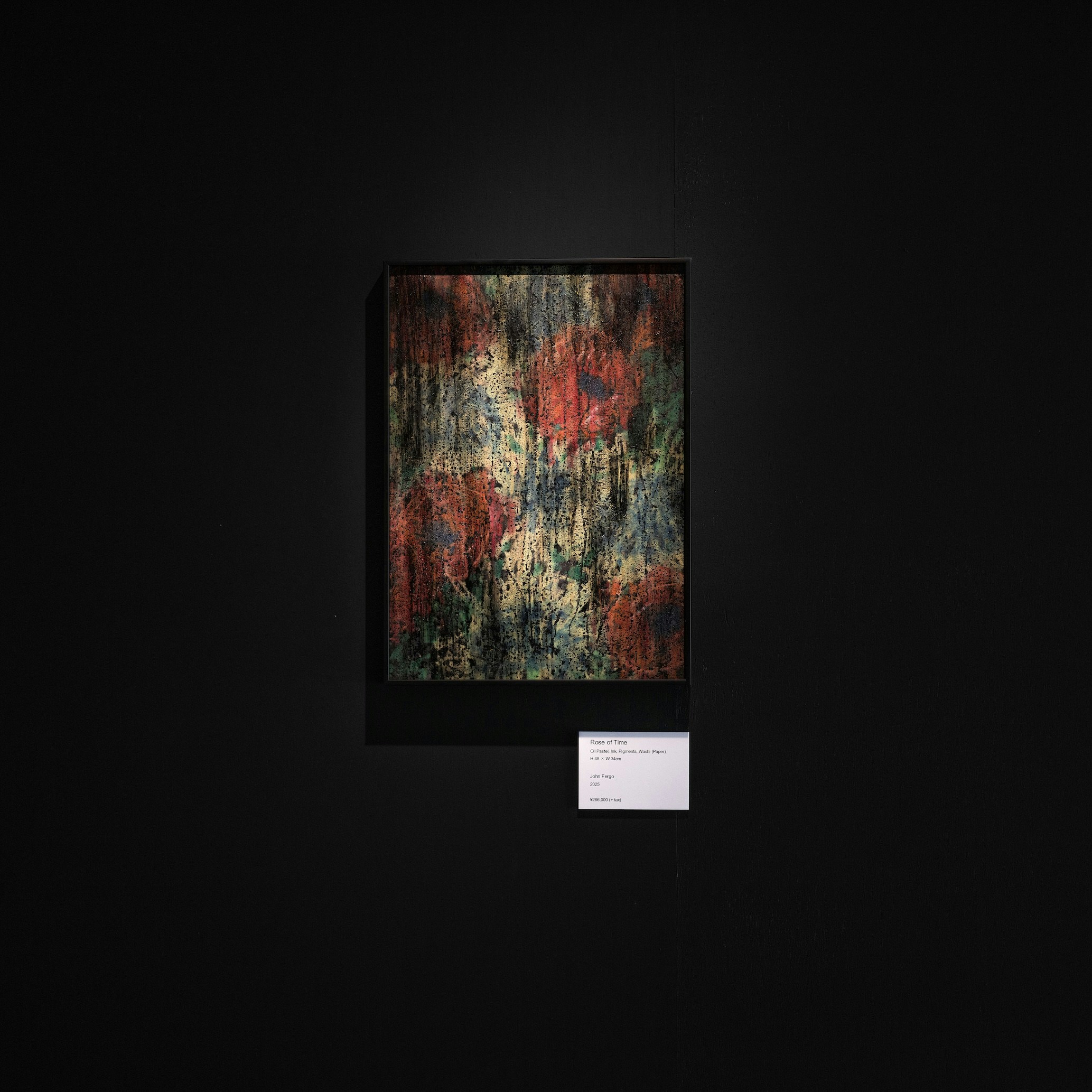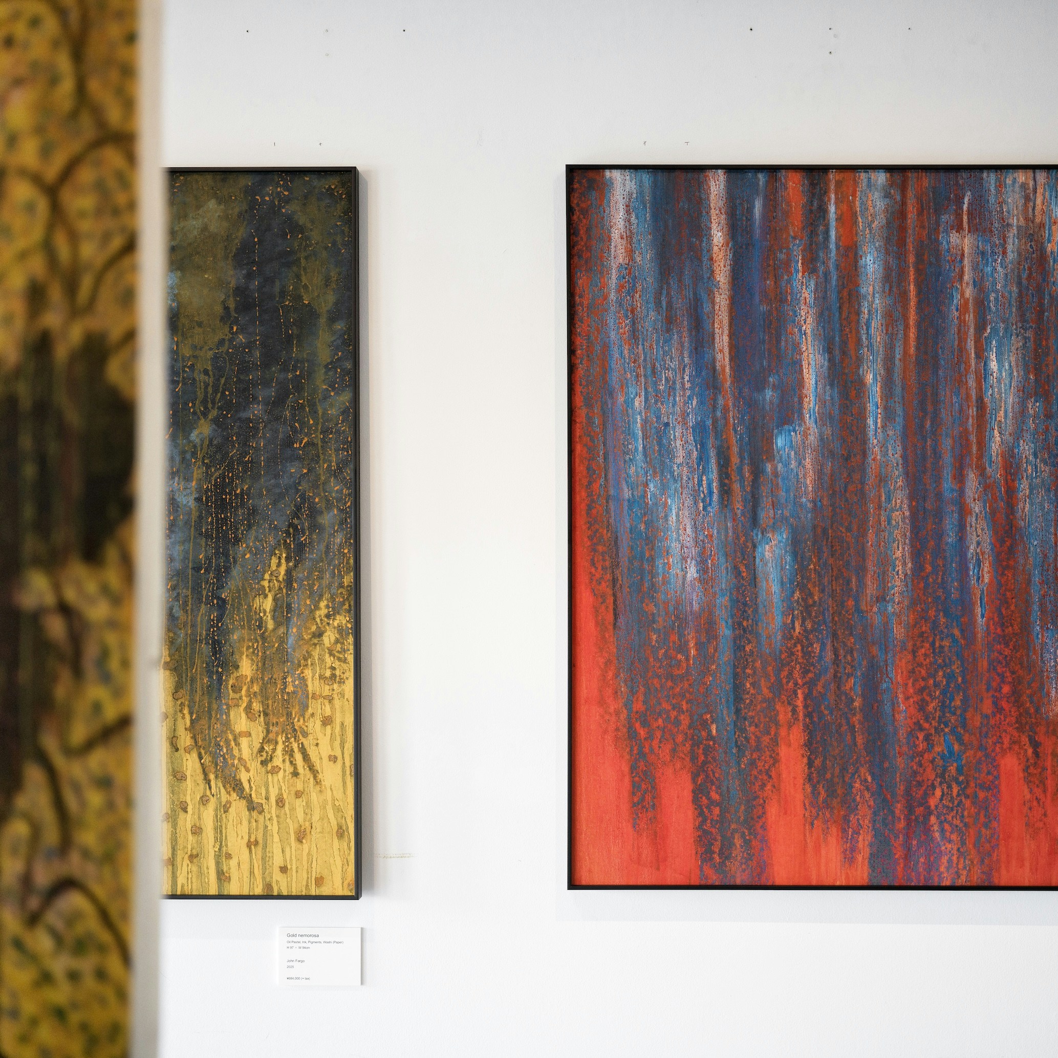 ジョン・フェルゴは幅広い表現⼿法を⽤いて創作活動を⾏うアーティスト。執筆、絵画、映画、ドローイング、写真など幅広い表現⼿法を⽤いて創作活動を⾏う。とくに近年は和紙が持つ独特な質感に惹かれ、油彩パステルと顔料を使った作品を主に制作している。スイス、ロサンゼルスでの複数回の展覧会を経て、今回が⽇本では初の個展だ。