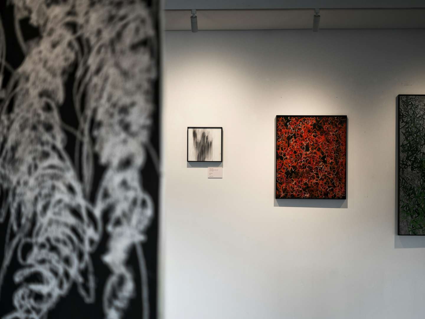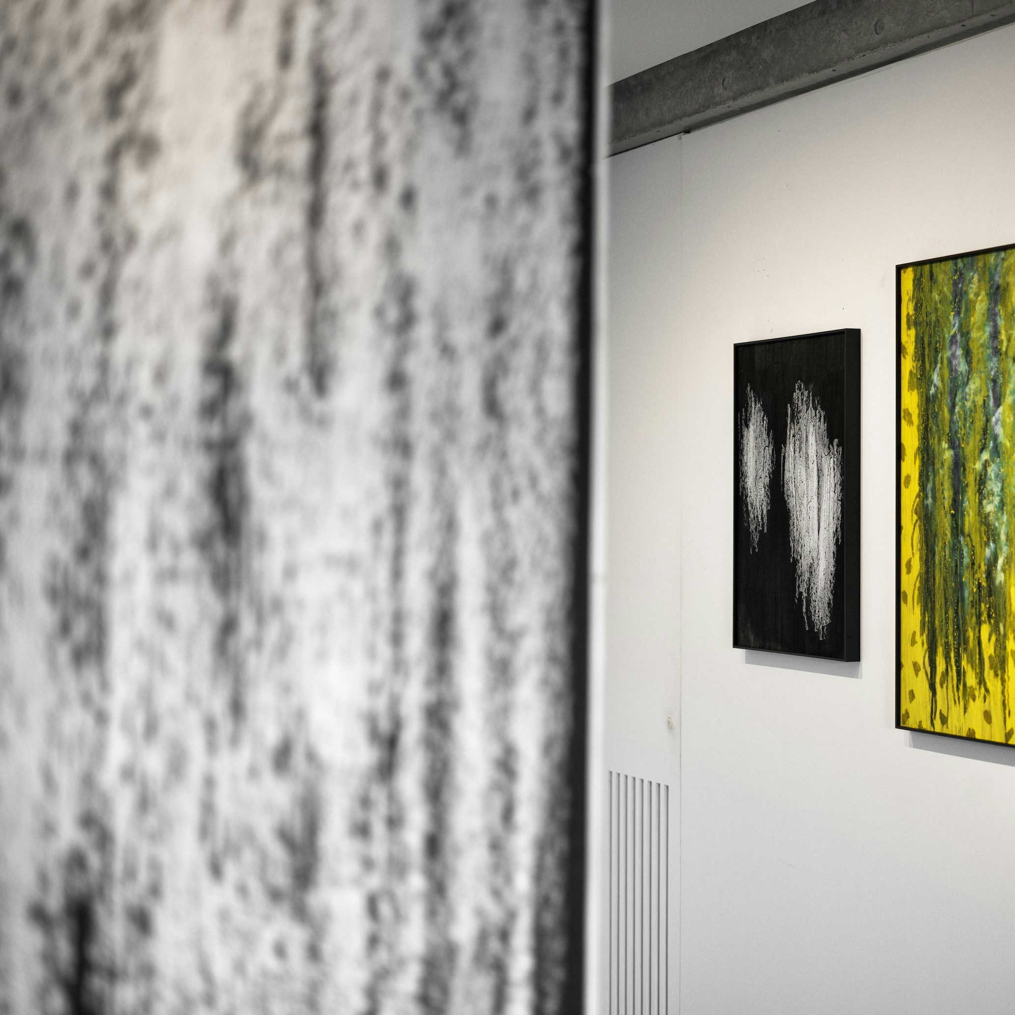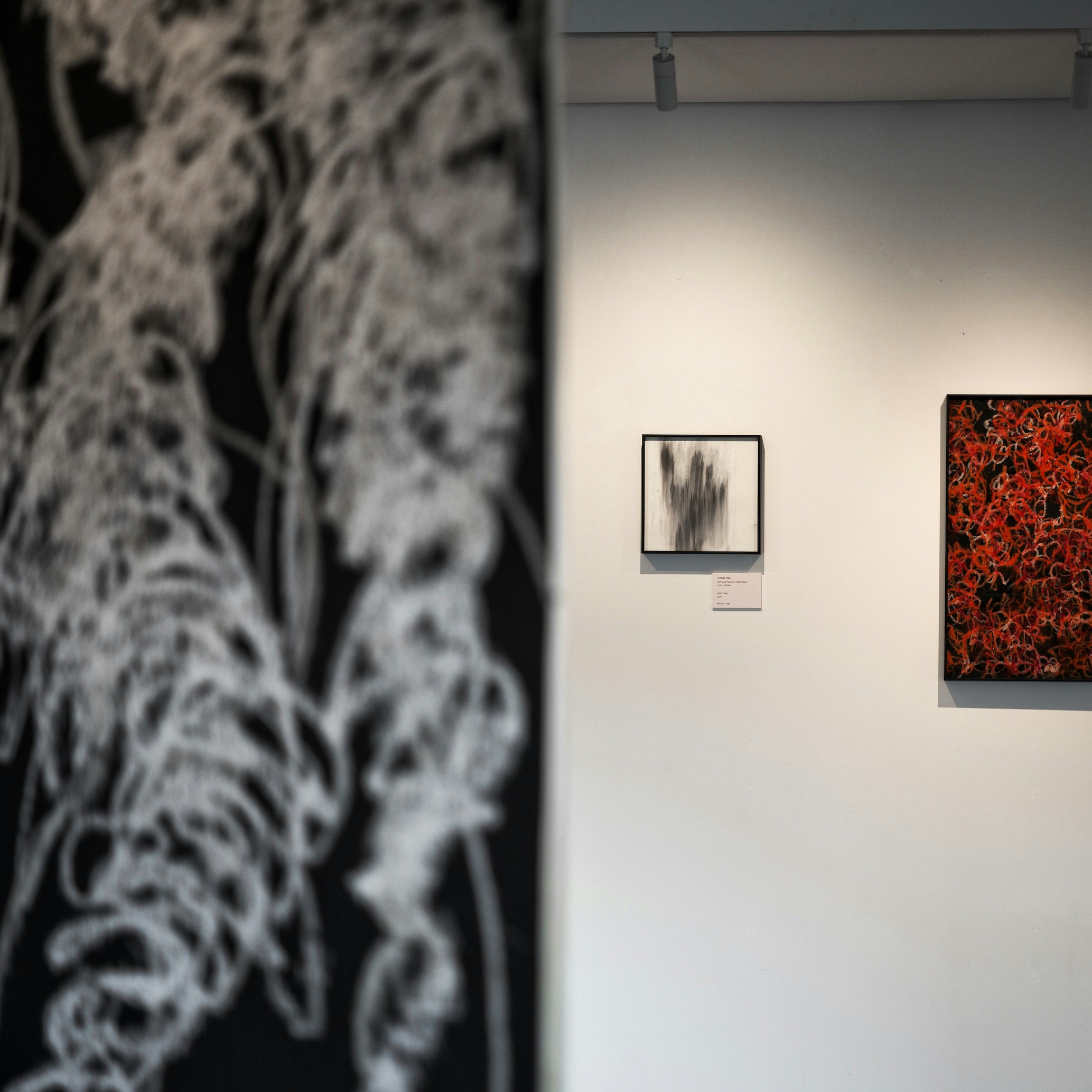 本展は、「BREATH(呼吸)」がコンセプトのインスタレーション。絵画、光と影、⾳楽を軸に、2フロアを使⽤したインスタレーションとなっており、時間のように⽬に⾒えず、掴みどころのない呼吸を「かすかな存在」として捉える。その存在は、紙の上を通り抜け、現れては消え、狭間を揺蕩う。ヴェールのように世界を覆いながらも、その奥にあるものをそっと⽰し、ひとつの呼吸の中で溶け合うような、静かで深い世界へ観覧者を誘うことだろう。