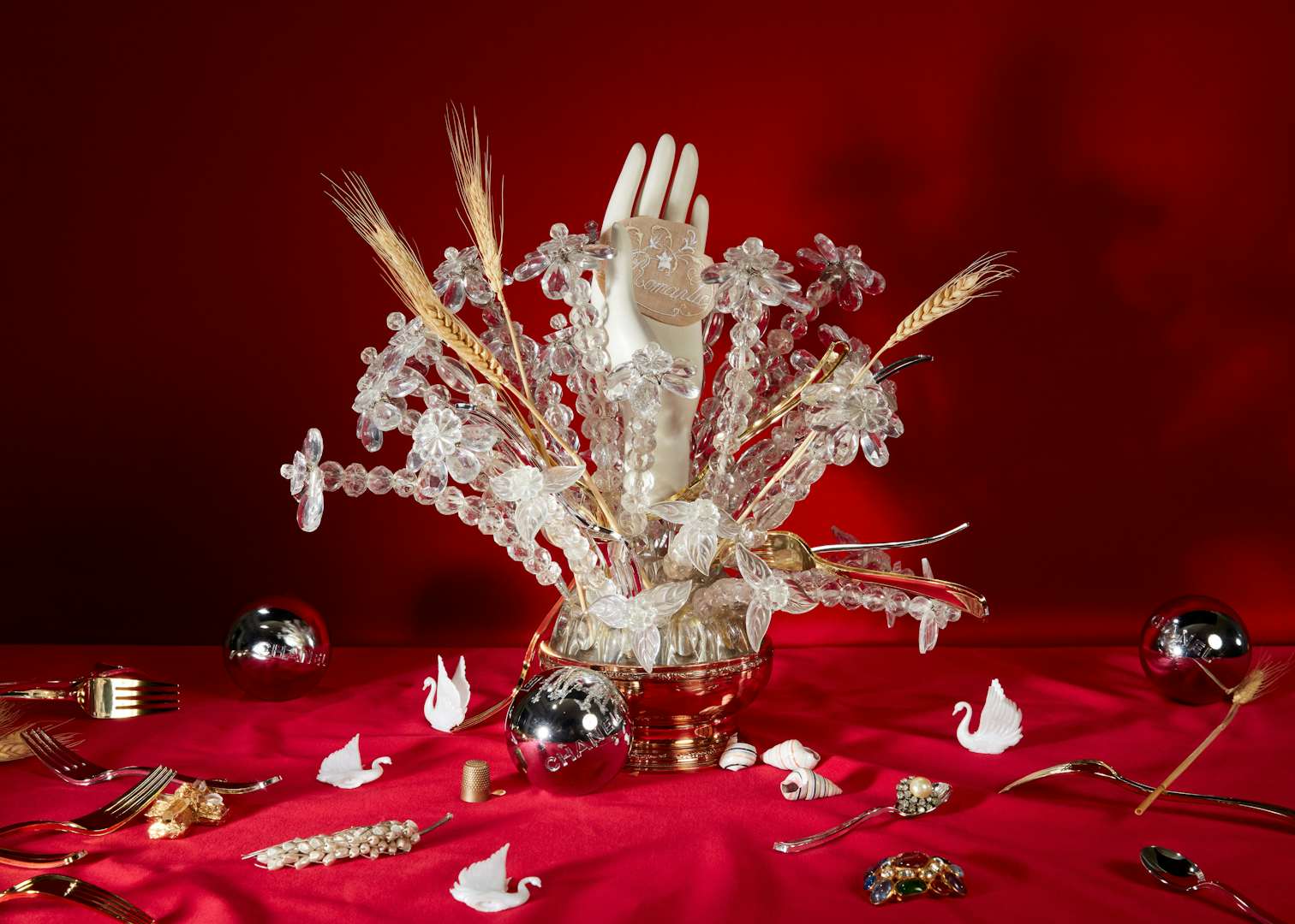 CHANEL 麦の穂のブローチ(製作ゴッサンス) 1960年代 CHANEL ペタンクボール 2010年春夏 プレタポルテコレクション パリ、パトリモアンヌ・シャネル蔵 ©CHANEL/Roe Ethridge
