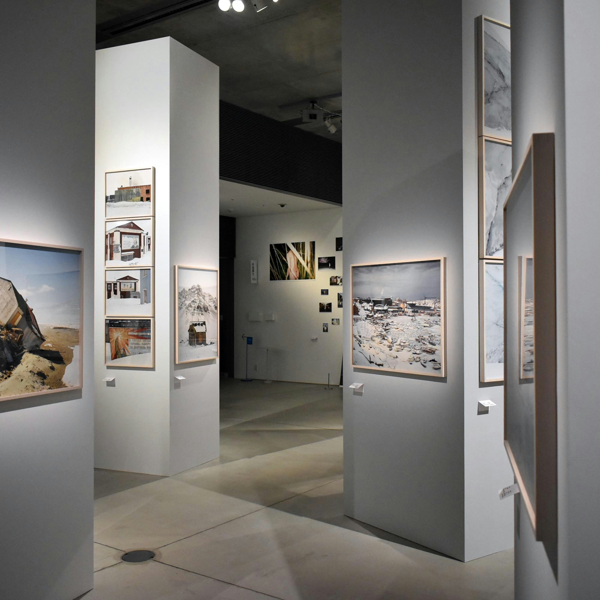また、展示室に高層ビルのようそびえるのは冒険家で写真家の石川直樹とサウンドアーティスト・森永泰弘のユニットによる「極地都市」のインスタレーションだ。本作は、その名の通り北極や南極などの極地を写した写真と、森永によるフィールドレコーディングの音で構成されたもの。石川の写真にひもづくサウンドが超指向性スピーカーによって流され、写真の前に立ったときにだけ耳に入る仕組みになっている。