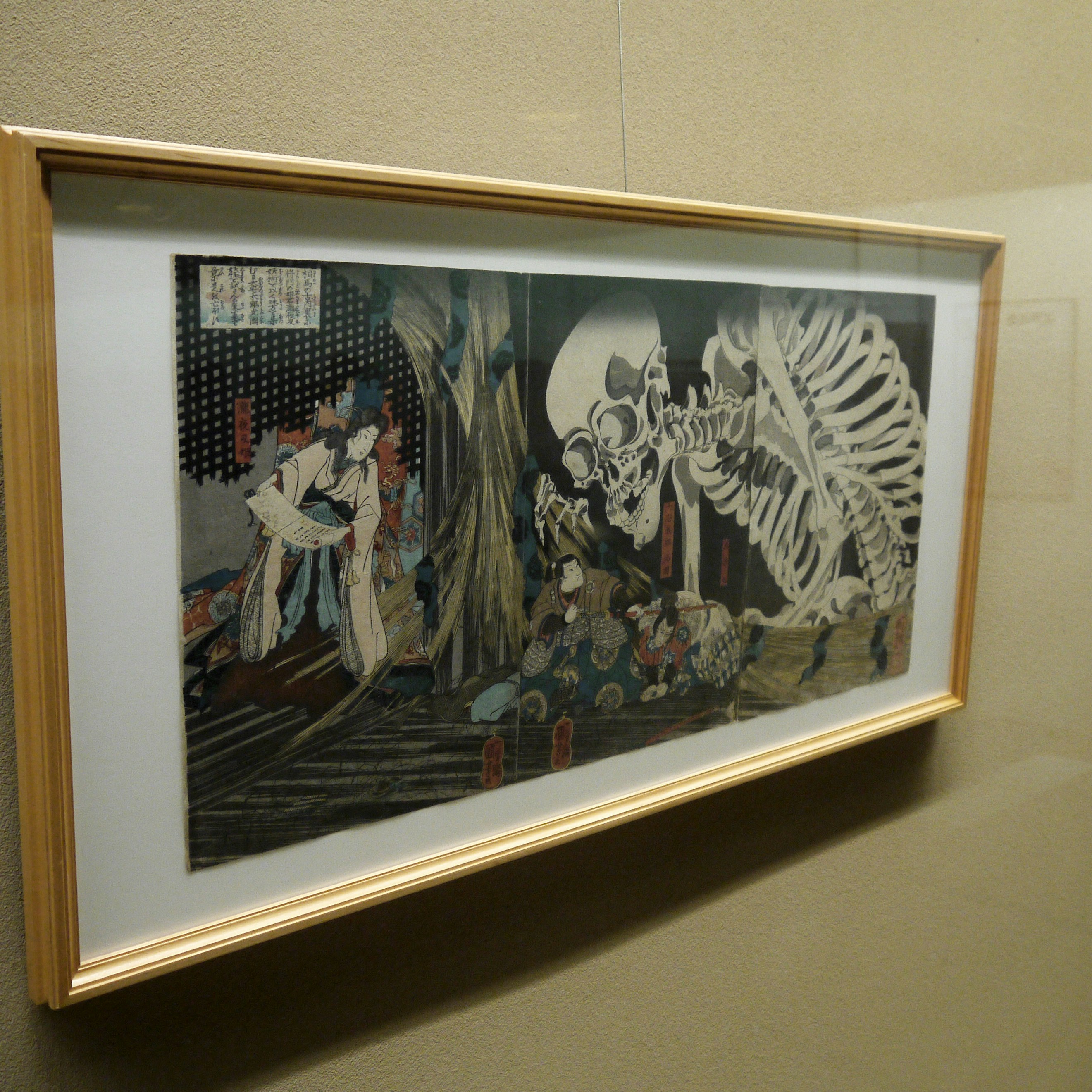 本展ではまず、盗賊・ねずみ男を描いた松雪斎銀光《講談一席読切 松林亭伯円 鼠小僧次郎吉 尾上菊五郎》(1874)や、妖術使いによって召喚された巨大な骸骨が描かれた歌川国芳《相馬の古内裏》(1845〜46、個人蔵)といった有名作品に出迎えられる。これから始まる「悪」の共演のダイジェスト版だ。