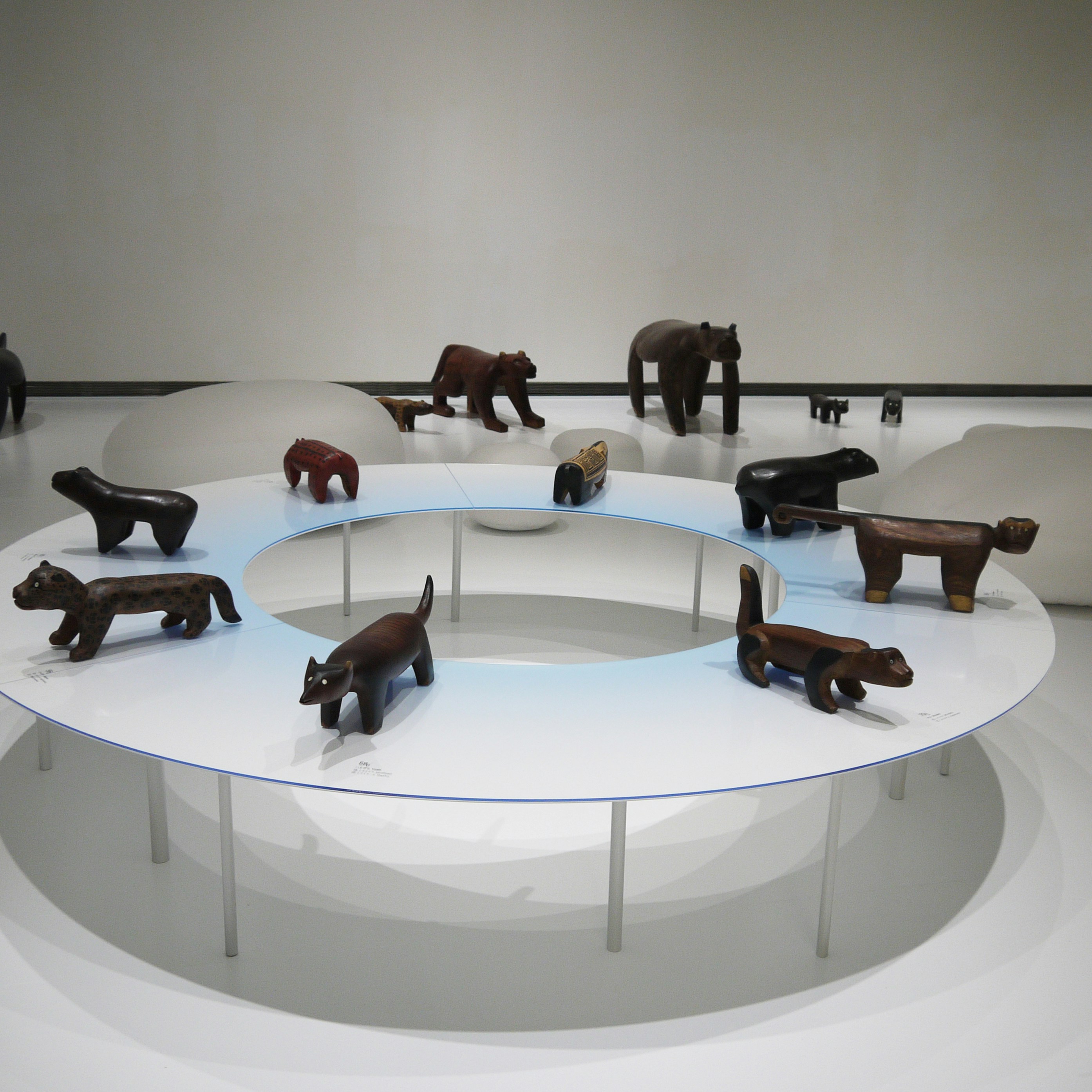 会場は、実用性としきたりに基づいた「伝統的な椅子」、プリミティブな宗教心が反映された「動物形態の伝統的な椅子」、先住民としての存在証明や想像力を示すための「動物彫刻の椅子」の3つのカテゴリーに分けて展示されている。