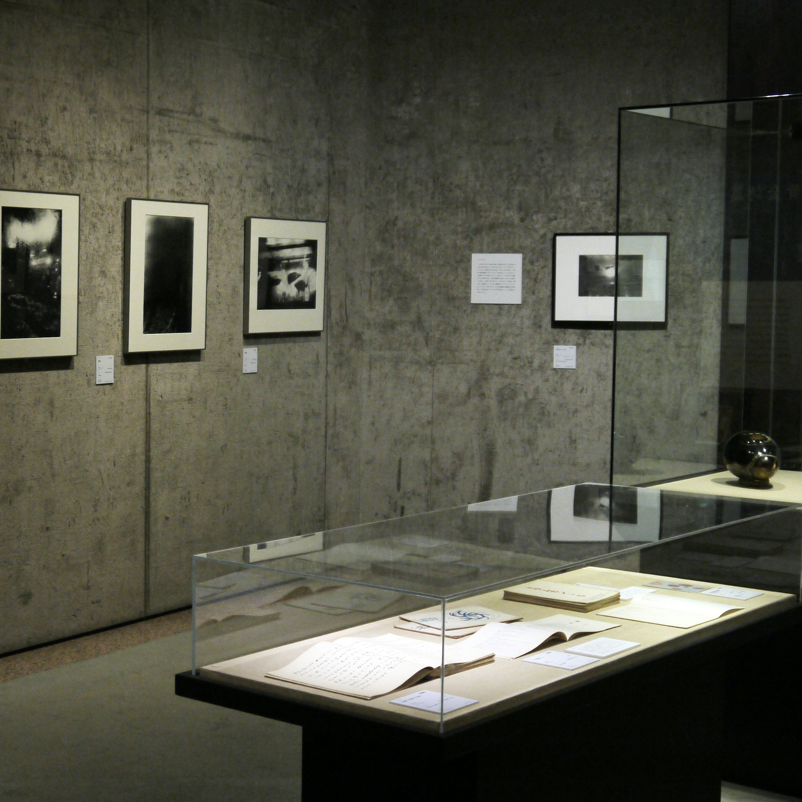 本展は「Ⅰ、詩集の彼方へ」「Ⅱ、写真を旅する」「Ⅲ、響かせる手」の3章で構成されている。1章では吉増の数多くの詩作の中から、『黄金詩篇』(思潮社、1970)、『頭脳の塔』より「古代天文台」(青地社、1971)をはじめとする10冊の詩集をピックアップ。各時代の関連作家の作品もともに展示され、吉増表現の源泉とバックグラウンドをたどることができる。